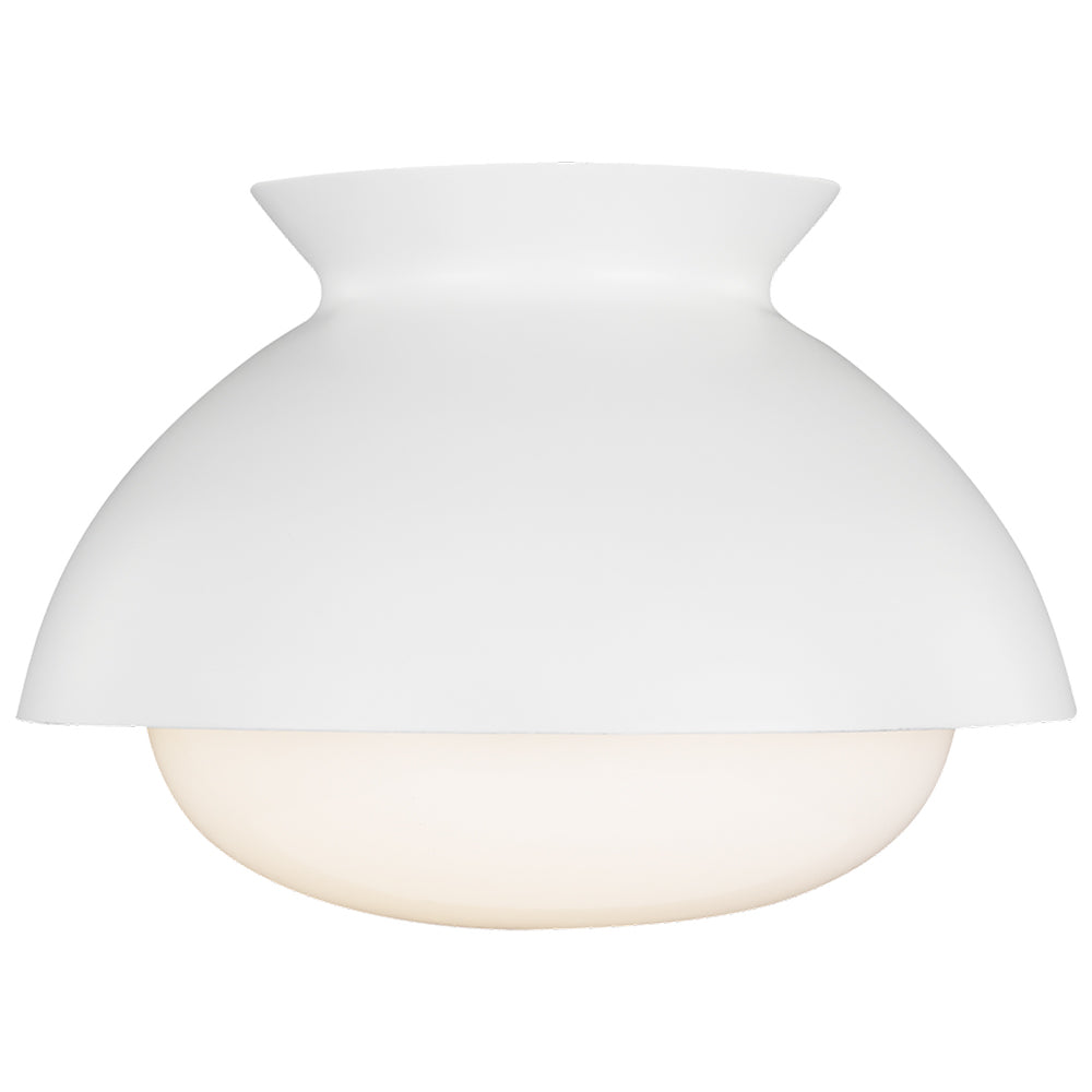 Illuminate your space with a modern touch with this Aerin Lucerne One Light Flush Mount. The Aerin Lucerne One Light Flush Mount is contemporary with time-honored appeal in a low profile, yet large-scale silhouette that exudes understated elegance. Hand-applied treatment of real gold leaf that lines the interior of the shade while a silk screen glass diffuser softens the illumination. This minimalist light frames your space with an elegant, understated aesthetic that complements a range of decor styles. The strong, overhanging shade eliminates glare while the softened white glass casts a soft ambiance and comfortable glow. Anchored by a curved back plate, this Aerin Lucerne One Light Flush Mountt light is engineered with classic convention in mind and is ideal for lower ceiling applications including hallways, bathrooms, bedrooms and much more. As a result, you’ll enjoy this durable, stylish flush mount light for years to come.