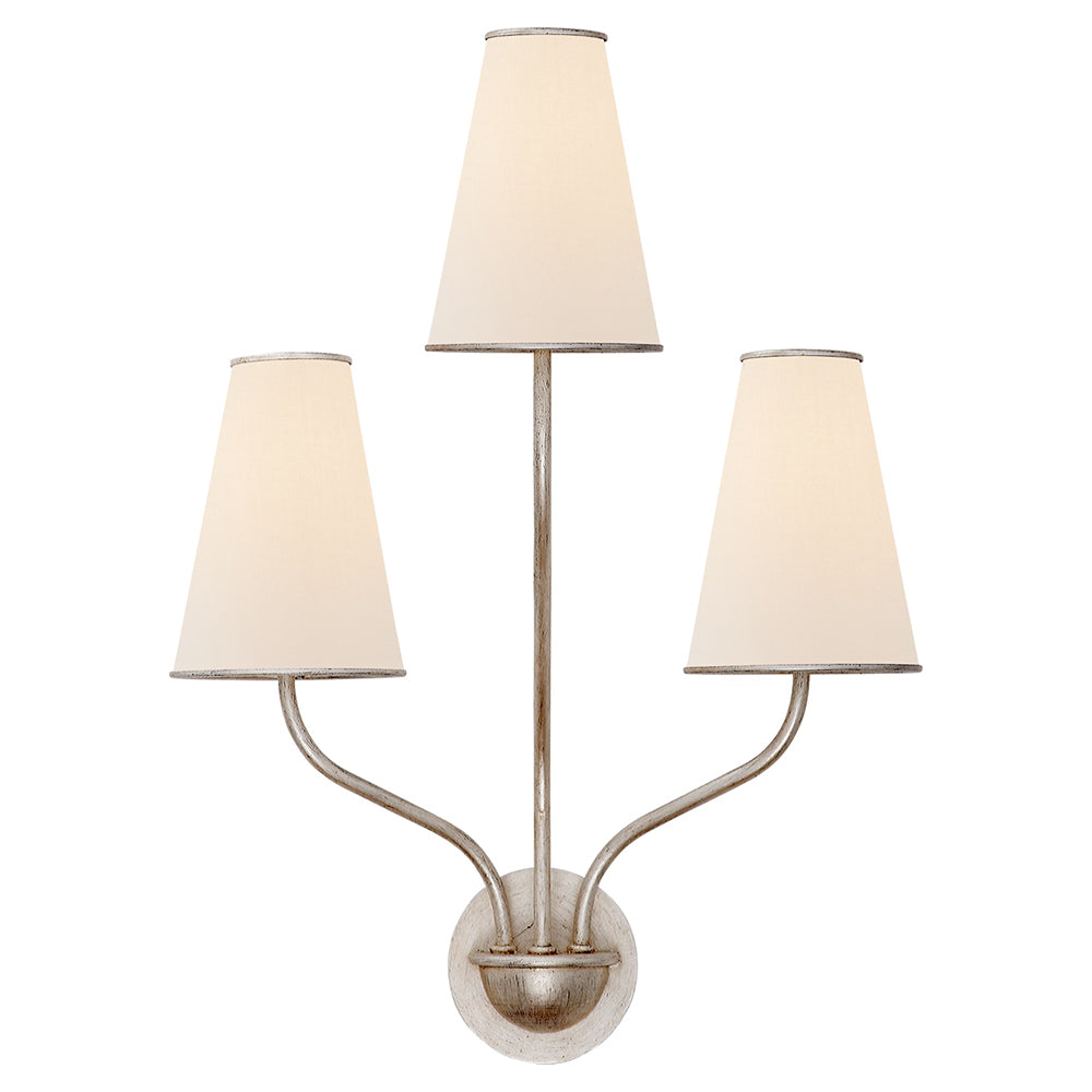 The Montreuil Small Wall is a stylish way to bring additional light to the darker corners of a room.A classic wall sconce with three linen shades that brings a warm glow and an elegant feel to a home.