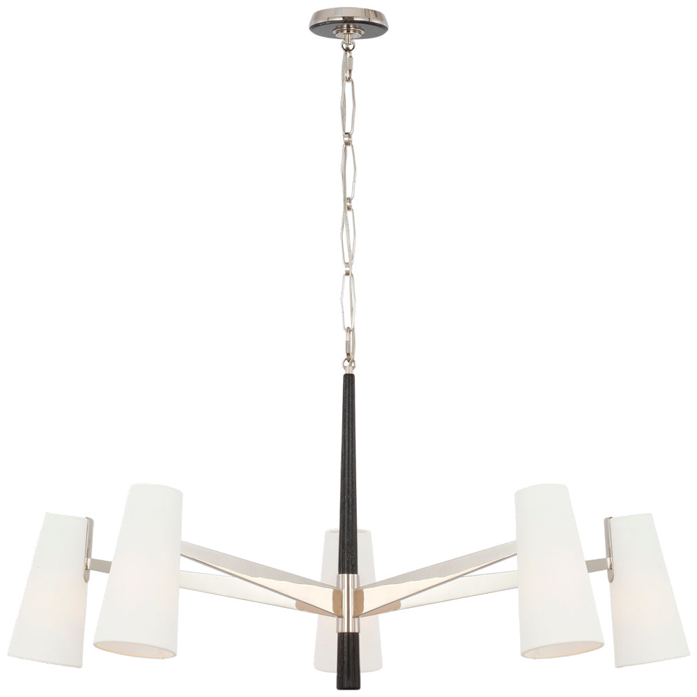 Indulge in the luxurious elegance of the AERIN Olina 44" Chandelier. The AERIN Olina 44" Chandelier is available in Hand-Rubbed Antique Brass and Mahogany or Polished Nickel and Ebony finishes, this chandelier is the epitome of sophistication and exclusivity. With its stunning design and high-quality craftsmanship, it will elevate any space and add a touch of refined beauty to your home with the AERIN Olina 44" Chandelier.