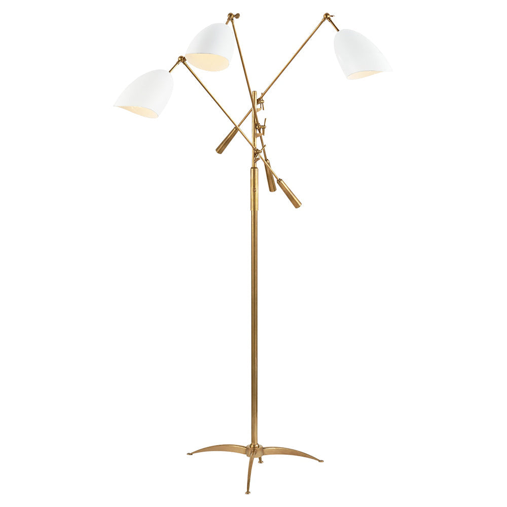 Discover Sommerard Triple Arm Floor Lamp by AERIN with his future design and elegance.Sommerard Triple Arm Floor Lamp by Aerin is available in two finishes Hand-Rubbed Antique Brass with White and Black.