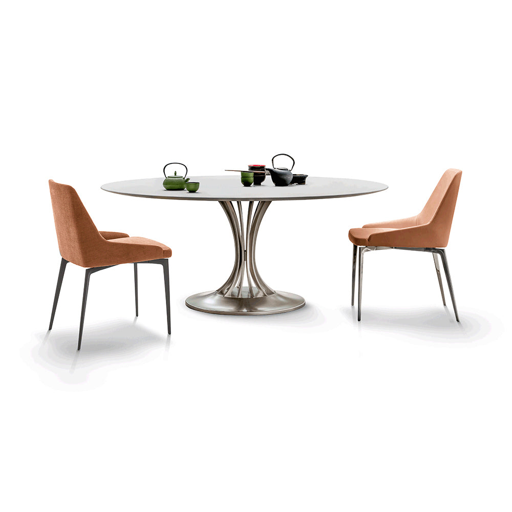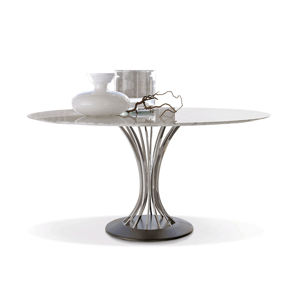 The durable, elegant Alivar Radar Table is both stylish and designed to last. Create a dining space to match your home's charm and character with this pedestal dining table.A table with a distinctive personality. The touch of exclusivity of Alivar Radar Table is due to the base,formed by steel spokes that sink into the cast iron base.A collection of steel elements in the form of an ellipse constitute the Alivar Radar Table.The model, the focal point of which is in the character of the central structure, has a distinctive clean, essential style.The cast iron base guarantees the table maximum stability and the round top, available in various finishes, making the Alivar Radar Table suitable for various living solutions.The pedestal structure design makes sure all the people around the Alivar Radar Table have enough space to put their legs in any comfortable position.