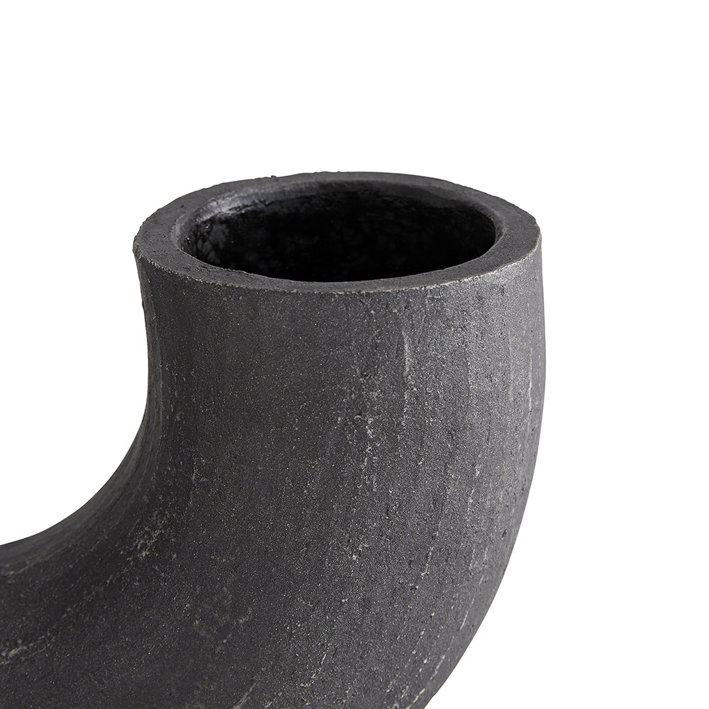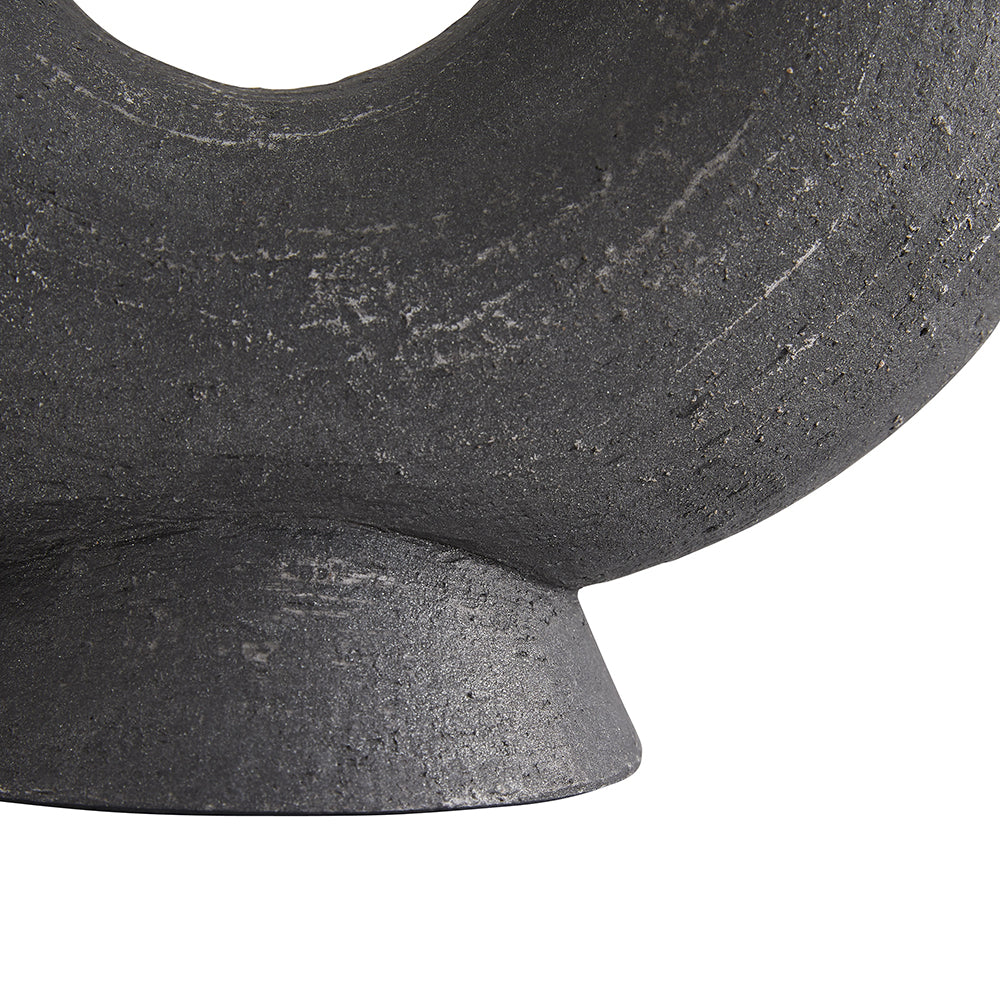 Arteriors Damien Sculpture is constructed with terracotta material and matte charcoal finish, but its finish may vary. The Damien transforms terra cotta into sculptural art. On one hand, the cresent structure of Arteriors Damien Sculpture takes shape with a textured matte charcoal finish adding depth to its tubular form. Its circular platform allows this product to showcase like fine art and its watertight capabilities allow it to function as a novel vase. On the other hand, it has a basic design, but can blend in with all of your other furniture that you have, filling your space with elegance and refreshing the look of your surroundings. Because of its plain color, it can be combined easily to any table, painting or anything that you might have in your house decorations. The material used in Arteriors Damien Sculpture construction just requires a light dusting, so it can be easily cleaned up. Its components make it different and unique to distinguish it from others in the industry.