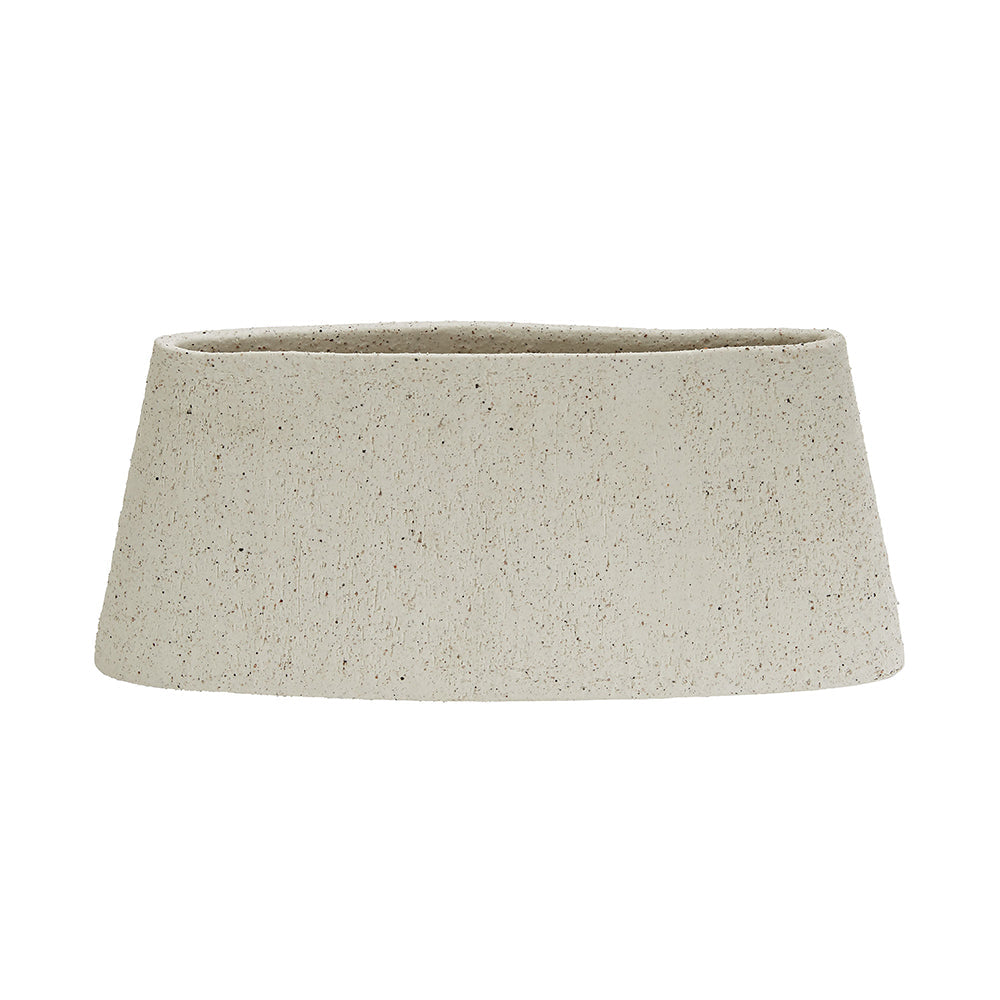 This set of three ceramic vases is an artistic expression of natural materials. Artisans incorporate sand into the ceramic to create the incredibly textured facade of each piece, which is finished in either ivory, gray or charcoal. The slender profiles and varied scale are ideal for a mantle or bookcase. Finishes for Hasta Vases by Arteriors will vary.