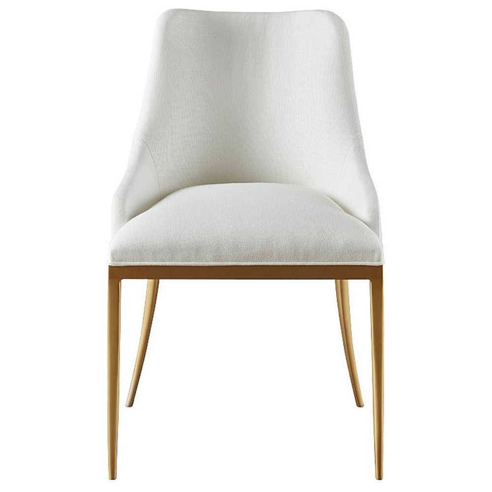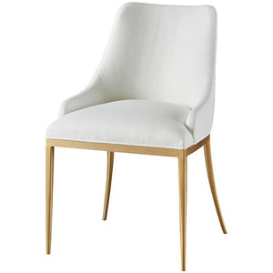 Great for adding to your dining ensemble or pulling out when you have a full house, accent chairs are always a stylish addition. Ready to be worn with pride, the Baker Luxe Stiletto Chair speaks volumes.Like the sharp, slender lines of stiletto heels, the Baker Luxe Stiletto Chair has a seductive and sensuous look defined by its plush perch and slim bronze leg design. Reminiscent of a pair of your favorite high-heel shoes, this fashionable Baker Luxe Stiletto Chair is oozing with elegance. It demands attention with its natural bronze frame and bronze finish, while its tapered legs look as though they belong on the runway. Working in direct contrast to the sleek bronze frame, an authentic natural linen upholstery finishes the look perfectly. This blend of materials is very inviting and perfect for offering a dash of timeless beauty.