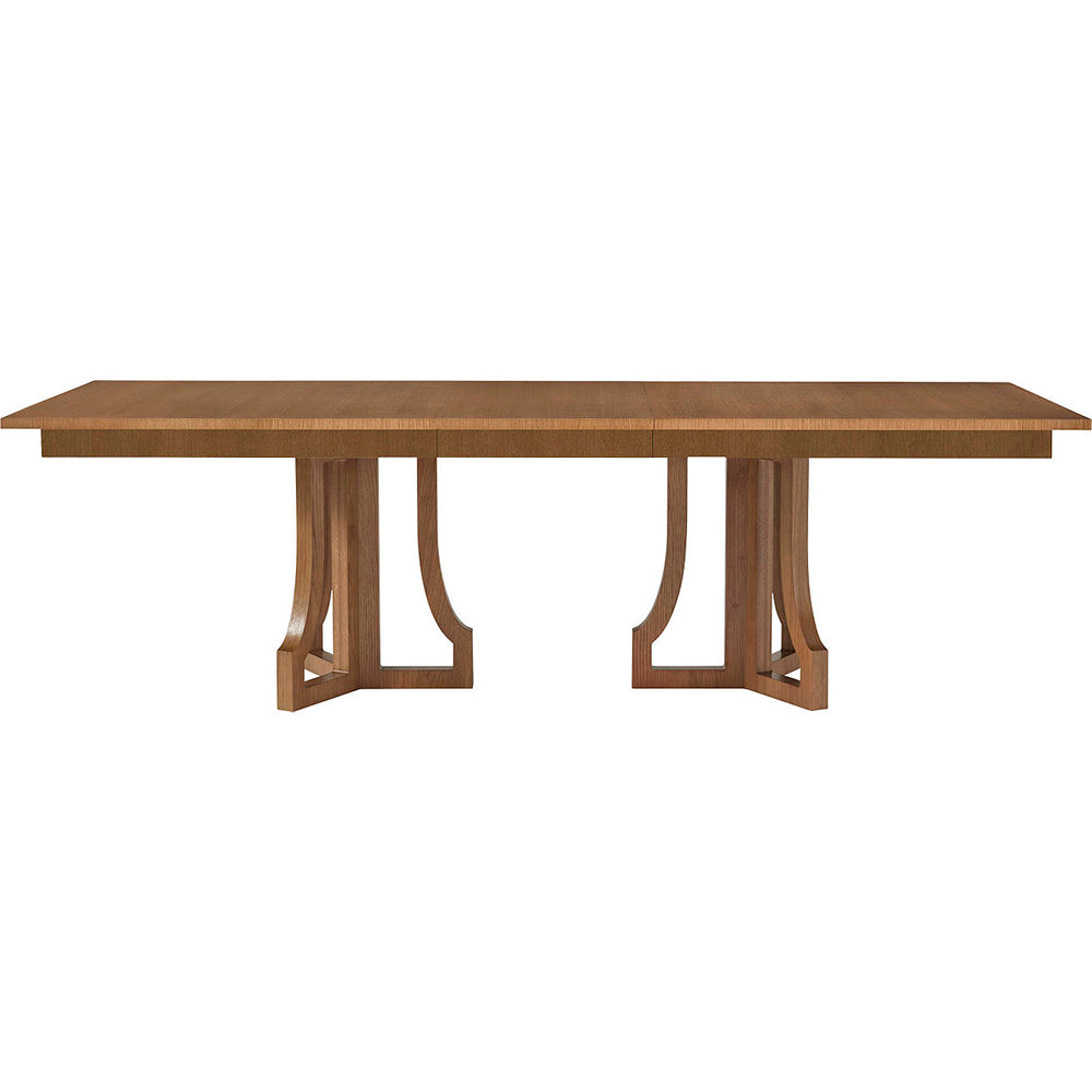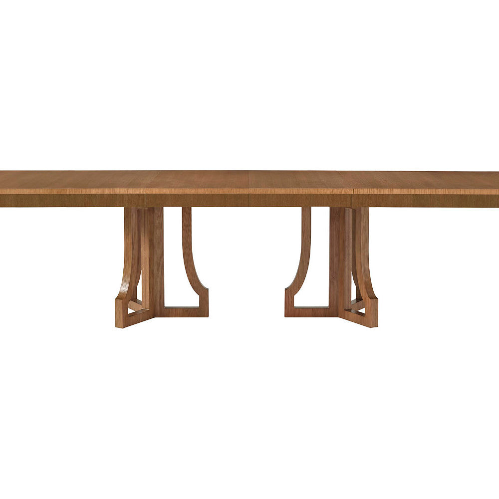 Bring sculptural intrigue to your eating space with this stylish and functional Baker Oakley Rectangle Dining Table. It showcases an iconic silhouette for plenty of mid-century appeal that's sure to elevate a cozy breakfast nook or your eat-in kitchen. The Baker Oakley Rectangle Dining Table is crafted in quartered oak. Featuring an architecturally-inspired open pedestal base, this piece includes one 20" extension leaf to fit any occasion, adding an air of simplicity and sophistication to your space. Gather family and friends to enjoy great meals around this dazzling table. The modern traditional design emphasizes clean lines, modern finishes, and the dramatic use of color to infuse energy into the room. The look replaces formality with a more comfortable and approachable aesthetic. This Baker Oakley Rectangle Dining Table takes classic design elements and transforms them using a crisp white finish for an inspiring take on luxury living today.