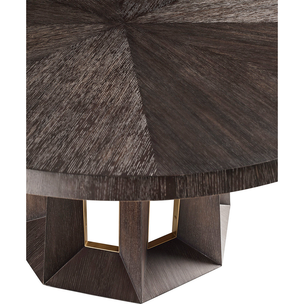 Ideal for tight corners and space-conscious rooms, this dining table is just the spot to enjoy casual meals and weekend brunches in modern style. Gather around the Baker Thomas Pheasant Oblique Dining Table. Discover this chic Baker Thomas Pheasant Oblique Dining Table available in Obsidian with Bronzino finish. The Baker Thomas Pheasant Oblique Dining Table is endlessly alluring and surprising, with a series of geometric forms that join to create an angular base. Sculptural and modern, the piece takes its inspiration from classical design. Enjoy a meal in mid-century modern style with this essential dining table. This Baker Thomas Pheasant Oblique Dining Table measures 60" in diameter so you can fit four people comfortably.