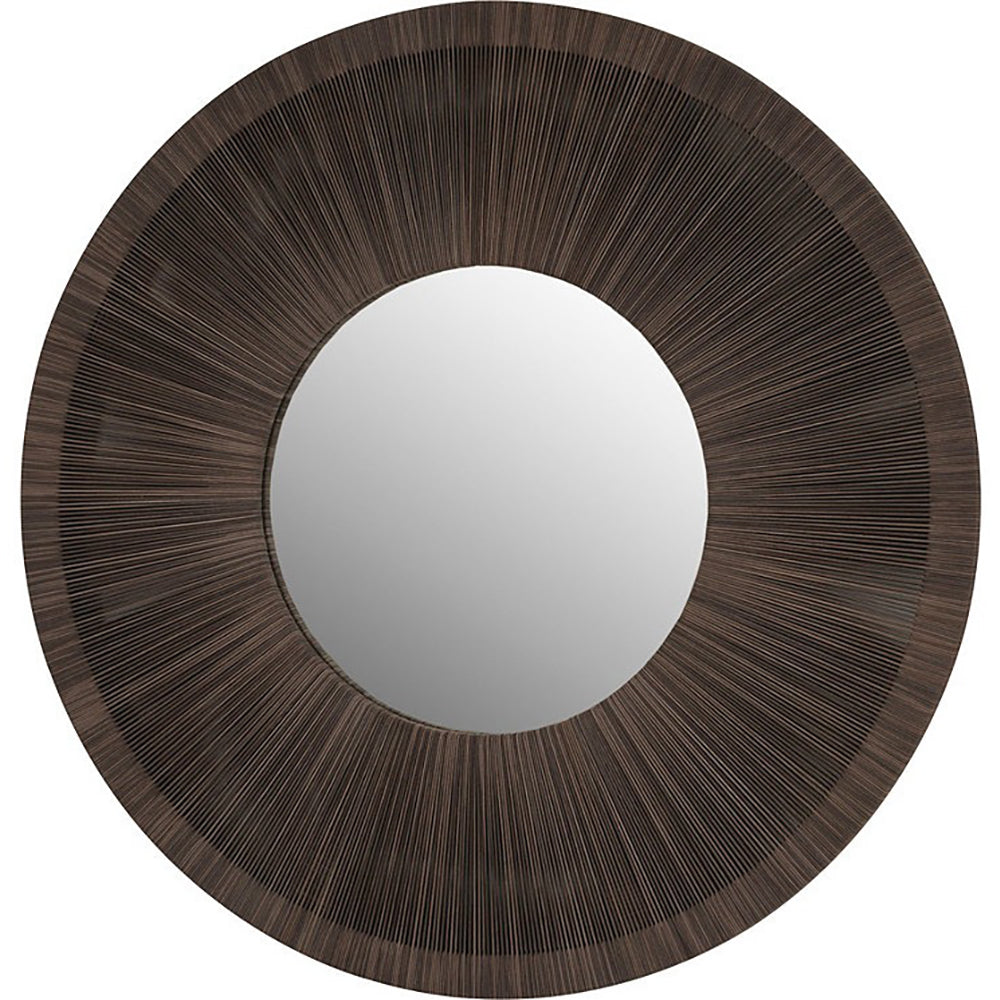 Leather cord wrapped frame with inset clear mirror 20.5" DIA