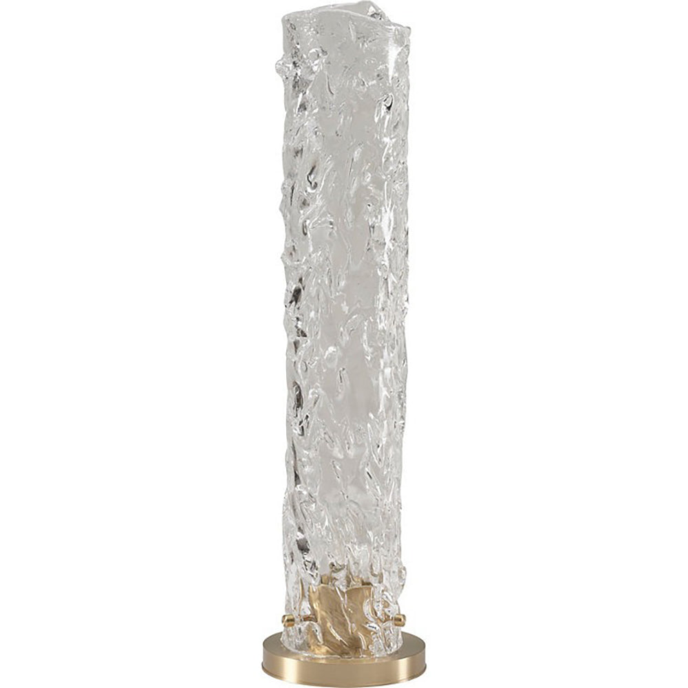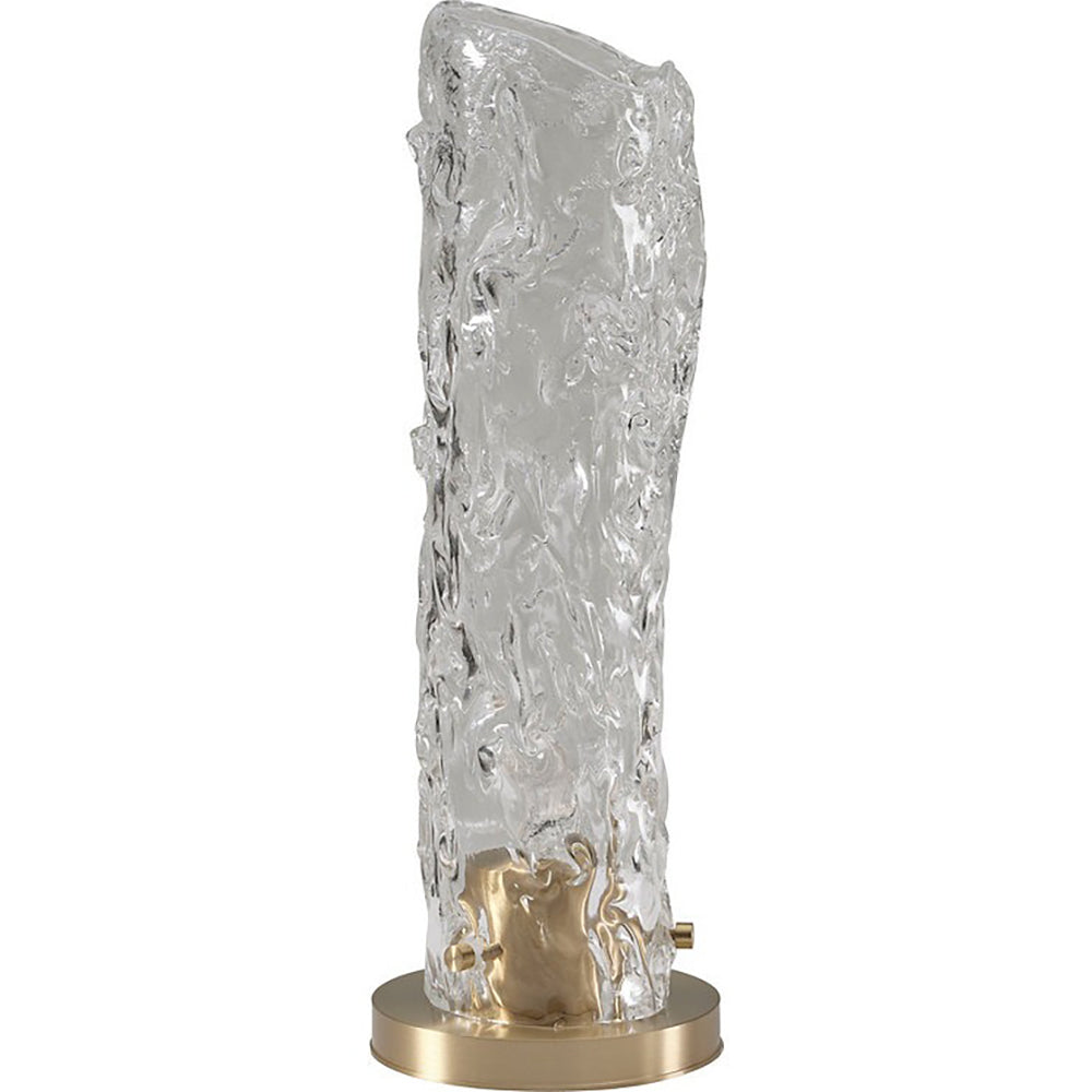 Light and informal with cast Murano glass, the Vela Table Lamp by Baker is inspired by the image of a sail opening towards the sky in a Mediterranean breeze. Featuring a cast brass base, the lamp is available in two heights that recall the masts of a sailing vessel. It is in small and large size.