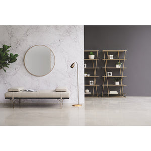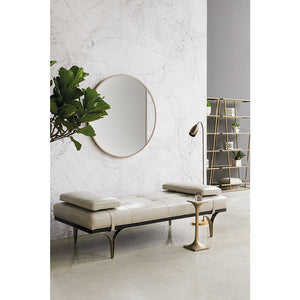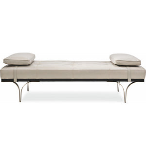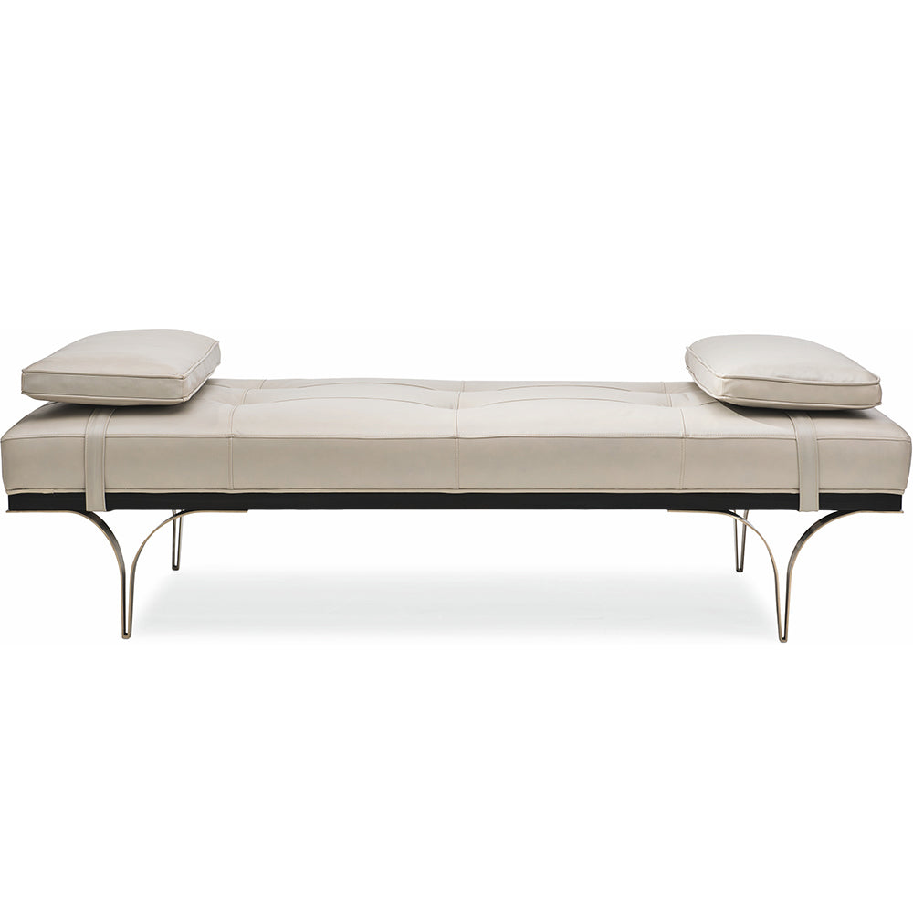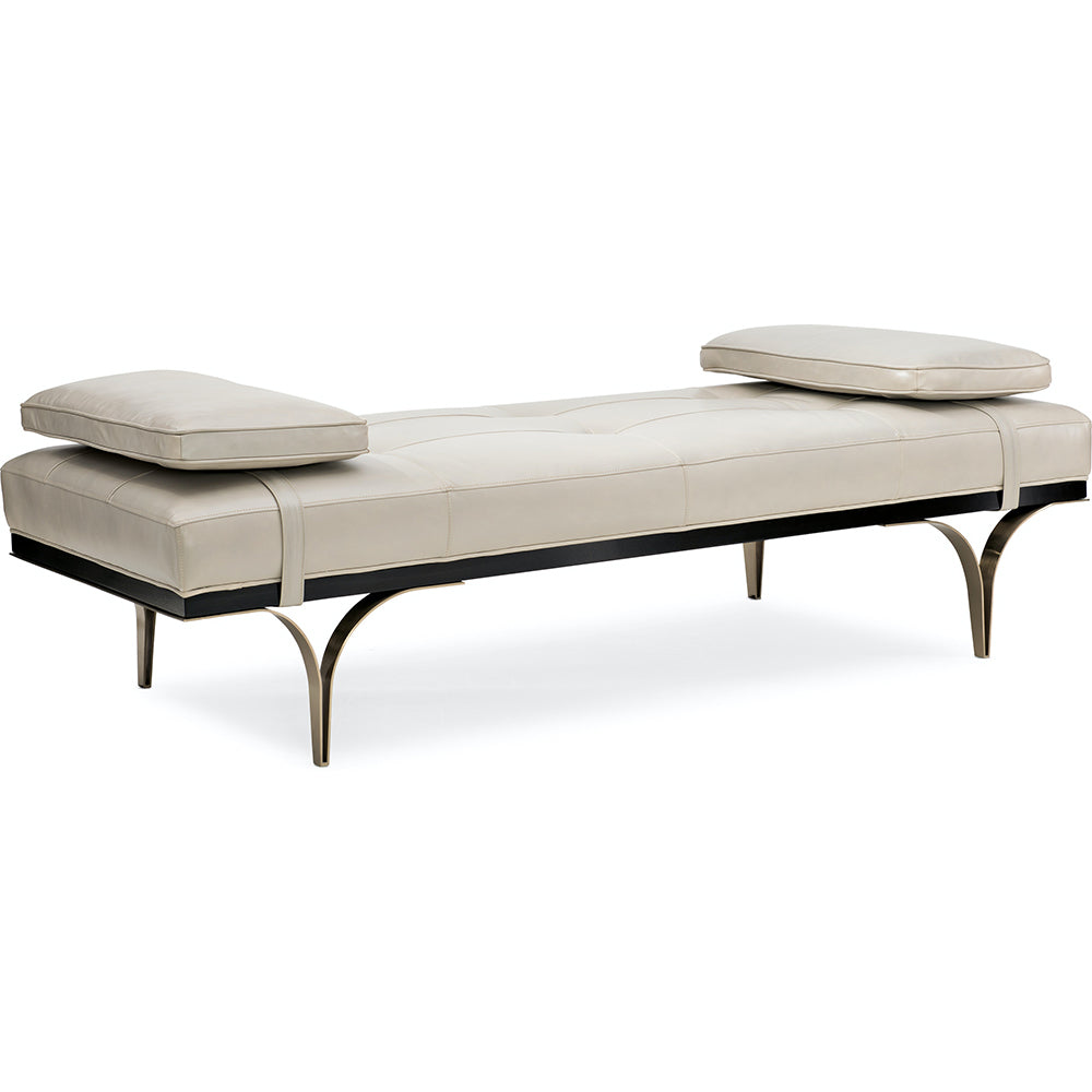 Designed for daydreaming, this daybed is truly lounge-worthy. Clean lines and elegant tailoring distinguish its appearance and are enhanced by a semi-aniline cover tufted in a modern grid pattern. A plush pillow highlights each end of this brilliant piece and can be secured or removed with ease. Metal V-shaped legs finished in Whisper of Gold elevate this daybed while lending an airy openness to its overall appearance. Designed to flatter every space, this special piece delivers a look you'll love for years to come.
