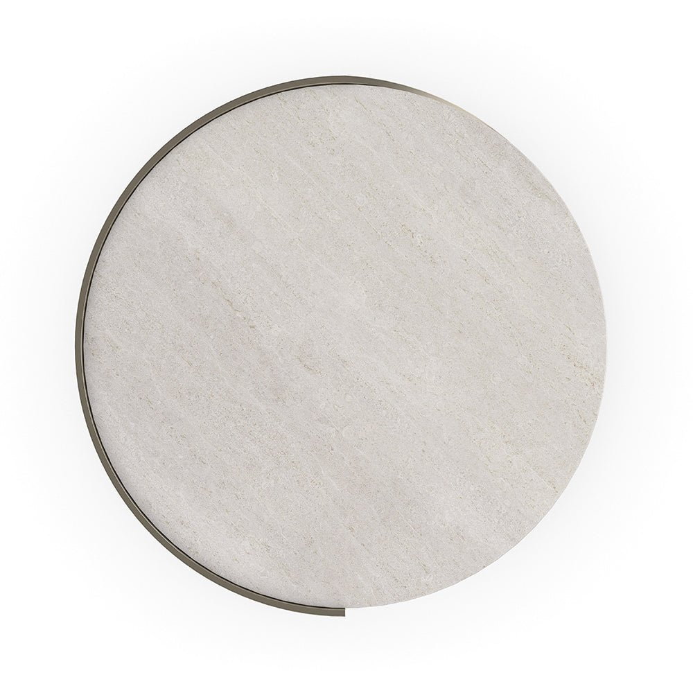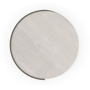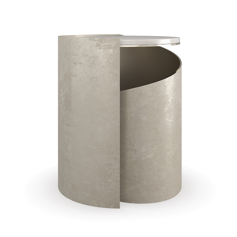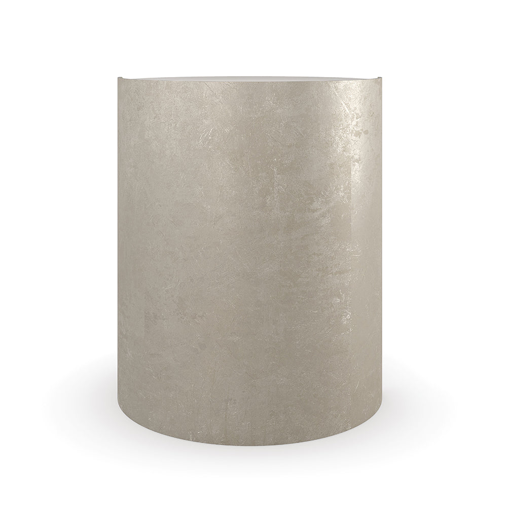 The Nautilus End Table is a beautiful addition to any interior, crafted with a sophisticated allure. Its exquisite Creme Travertine stone top is encased in a precious Whisper of Gold plating, with a distinctive outside edge leafed in a luxurious random pattern Taupe Silverleaf. Truly an elegant piece, this table makes an exquisite statement.