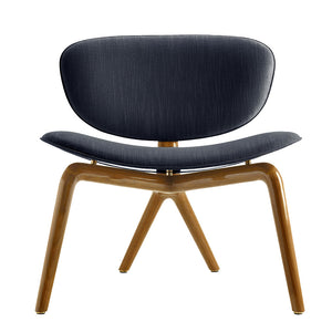 As shown: It is made in solid American walnut. Its seat and back-rest are made in upholstered curved plywood, making it one-of-a-kind and unique.
