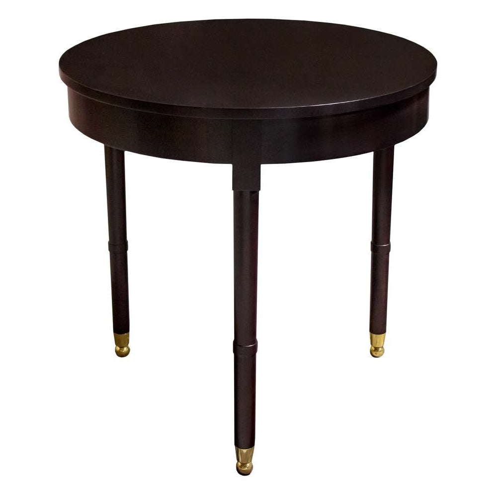 This Neoclassic style lamp table is made of Cherry and is perfect in either wood finishes or any of Councill's painted lacquers. Custom colors are also available for an extra charge. There is one single drawer. Three round tapered legs feature Brass ferrules terminating with ball pad feet.