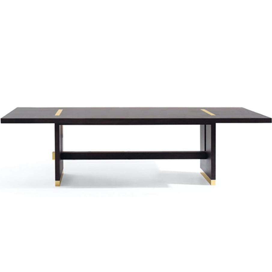 The DH Collection Camden Dining Table is a timeless piece of luxurious craftsmanship. Its sturdy oak or walnut construction provides a robust foundation while its polished antique brass or silver details add a touch of sophistication. Perfect for dinner parties or cozy family meals. Enjoy a touch of opulence in your dining area and a lifetime of fine dining with the Camden.