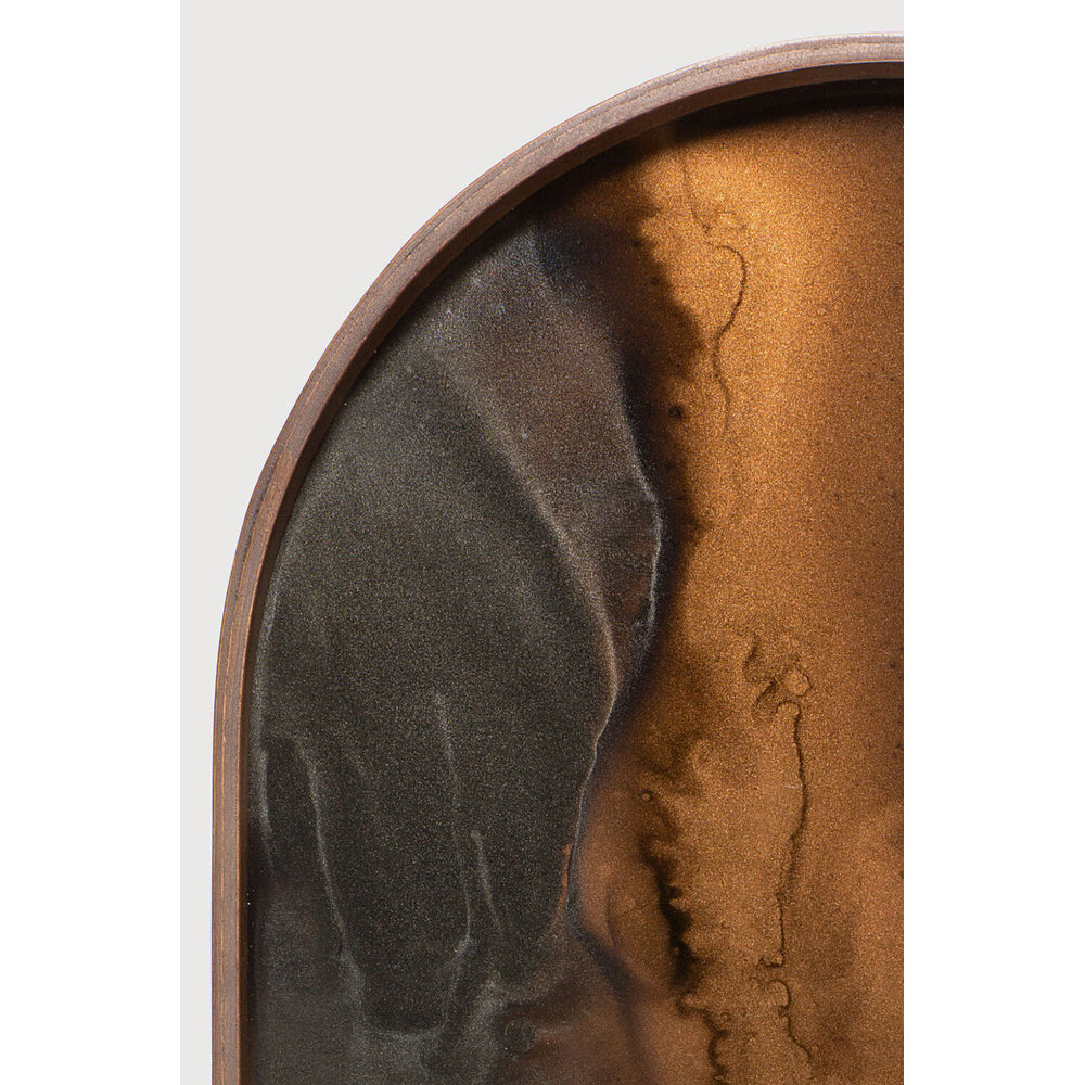 Bring an elegant touch to your tabletop with this Ethnicraft Organic glass tray. Organic movement meets linear shapes in the Linear Flow tray collection. This Bronze Ethnicraft Organic glass tray is inspired by the ink drawings at the beginning of the design process, when the pigment hits the glass it takes on a remarkable life of its own. Complementary effects are revealed in unexpected ways, where hand sketched and painted linear patterns generate a truly distinctive finish. Complementary effects are revealed in unexpected ways. Add this stunning Ethnicraft Organic glass tray to your home decor while enhancing your overall look. Display this Ethnicraft Organic glass tray on a buffet in the dining room or a console in the entryway. Packaged in an elegant box, this Ethnicraft Organic glass tray is a perfect gift idea for your special loved one. Practical and beautiful this Ethnicraft Organic glass tray can be used as a serving or snack tray, or candle tray and offers a lovely gold accent border around the tray.