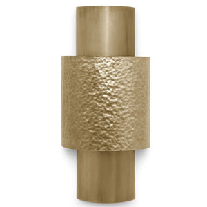 Projecting dramatic and warm light, the Bond Wall Lamp is an elegant and strong piece, with an exterior arc in polished hammered metal that enlaces the interior arc in brushed plain metal.