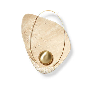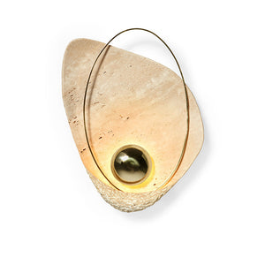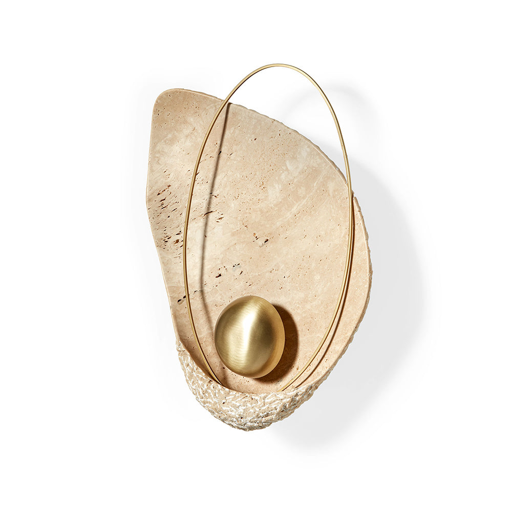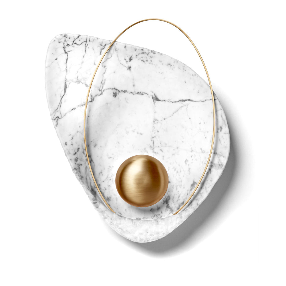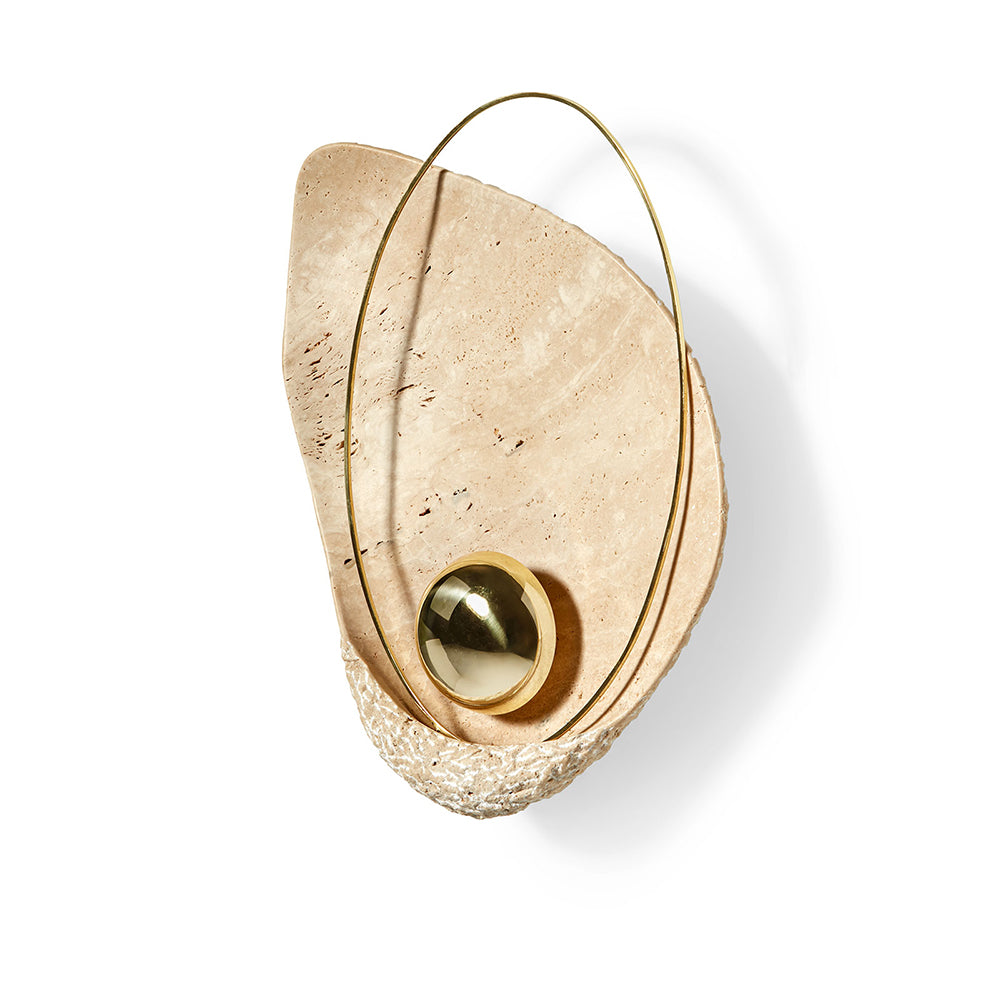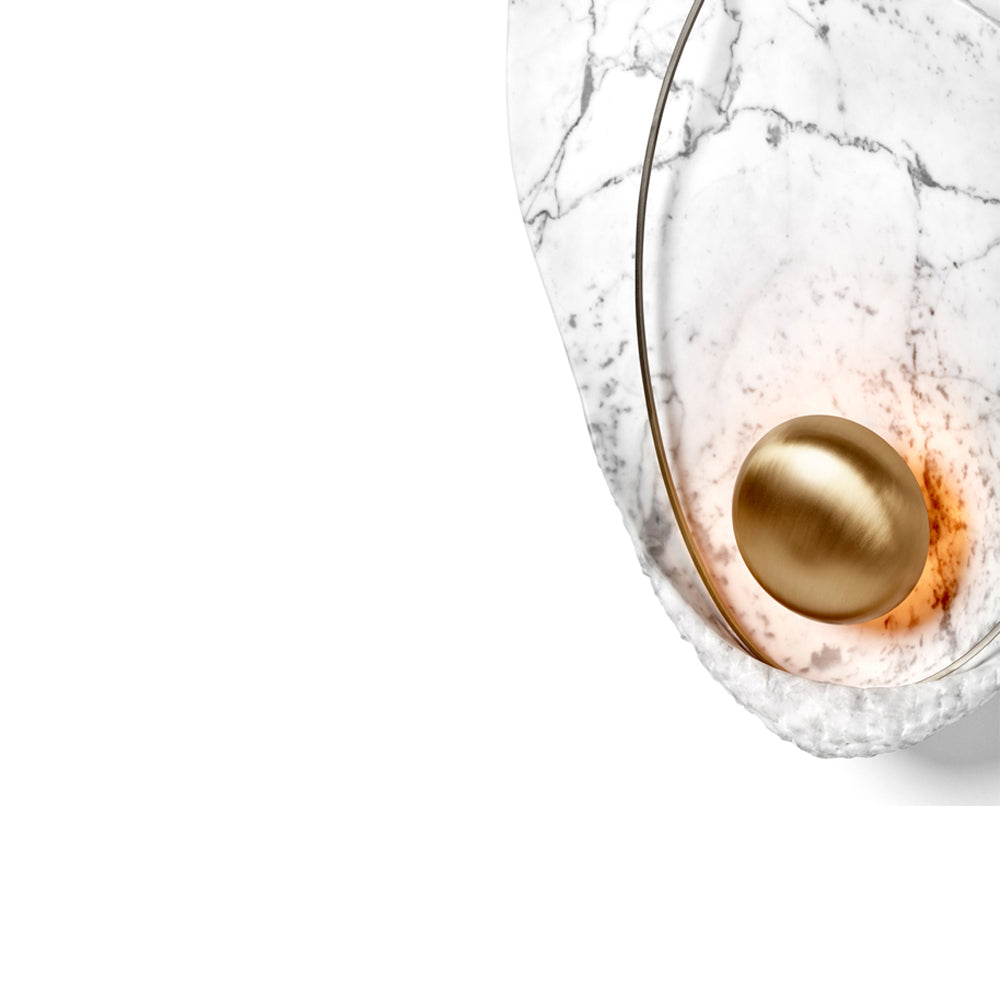 The Pearl Wall Lamp is a poetic handcrafted tribute to Nature’s mysterious ways. The piece, made in marble and metal, represents one of its quintessential attributes – serendipity. The magnificence of pearls, when produced naturally by oysters, is as breathtaking and it is exquisitely rare. The Pearl Wall Lamp’s marble shape is carved by hand, making each piece, much like a natural pearl, an absolutely unique sculpture.
