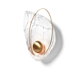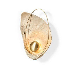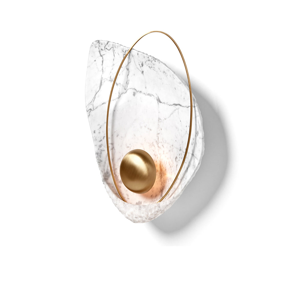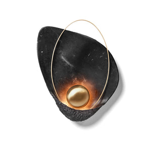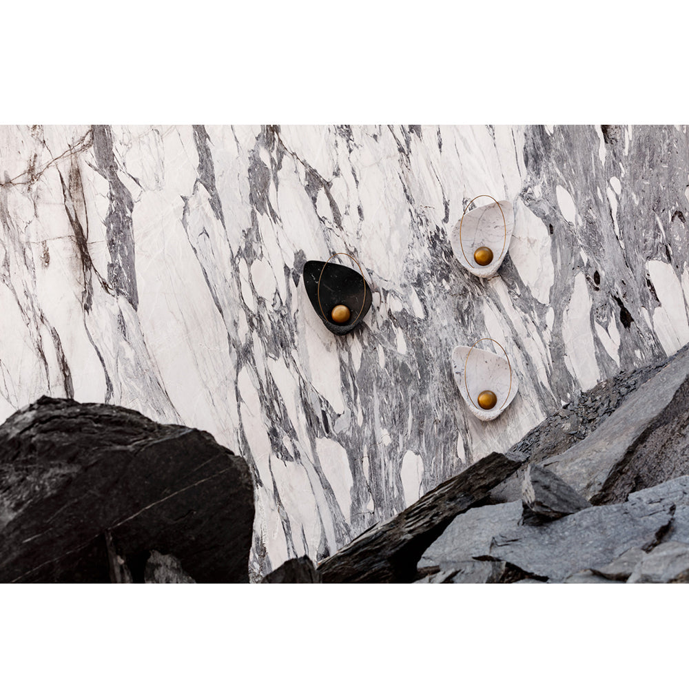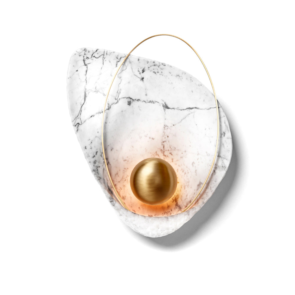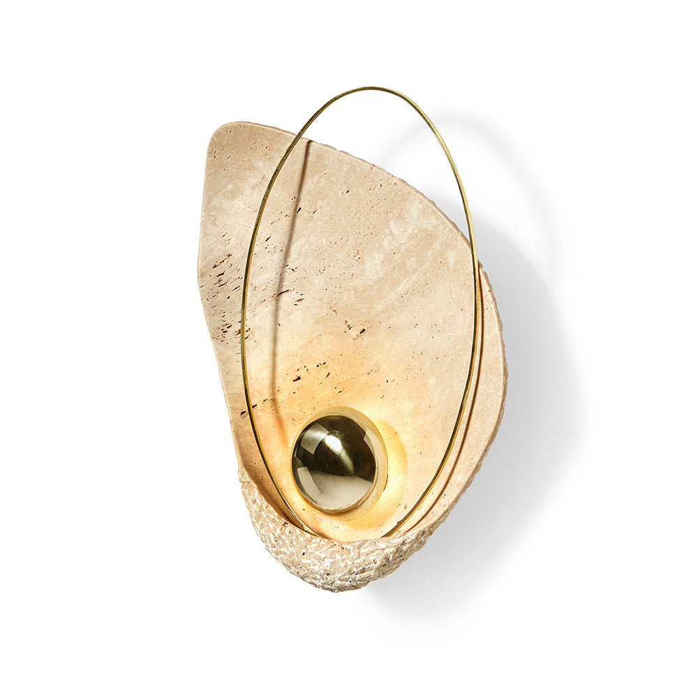 The Pearl Wall Lamp is a poetic handcrafted tribute to Nature’s mysterious ways. The piece, made in marble and metal, represents one of its quintessential attributes – serendipity. The magnificence of pearls, when produced naturally by oysters, is as breathtaking and it is exquisitely rare. The Pearl Wall Lamp’s marble shape is carved by hand, making each piece, much like a natural pearl, an absolutely unique sculpture.