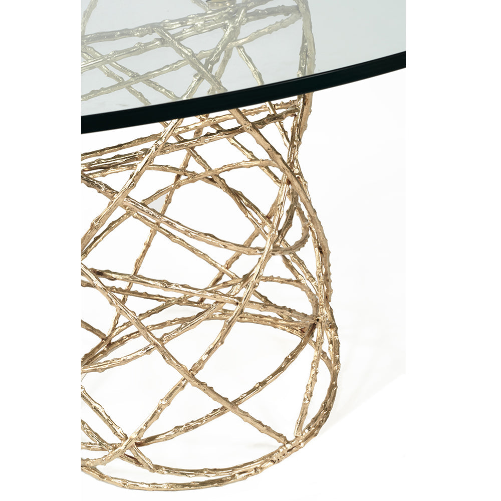 Eternalized rosebush branches, molded in brass casting, give a perennial feel to this elegant table. The bottom structure is assembled by hand by artisans, while the minimalistic top offers a soothing and quiet balance to this piece.