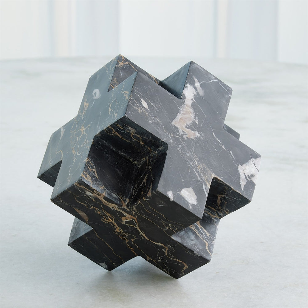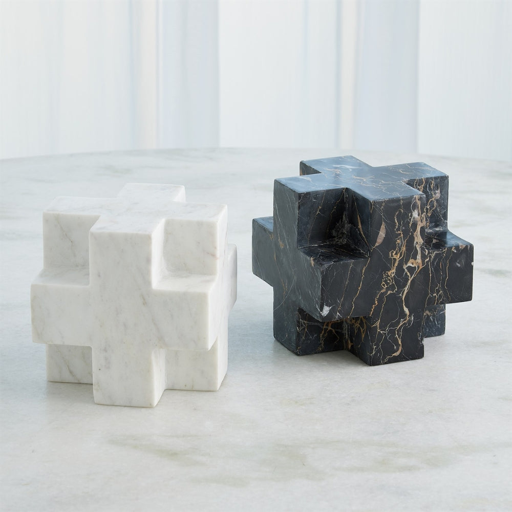 Elevate your home decor with our Global Views Plus Sign Object Sculptures. Hand-carved by skilled artisans, these stunning pieces feature white Banswara and Golden Portoro black marble, showcasing the beauty of natural variations in veining and color. Experience the luxury and exclusivity of owning a truly unique work of art.
