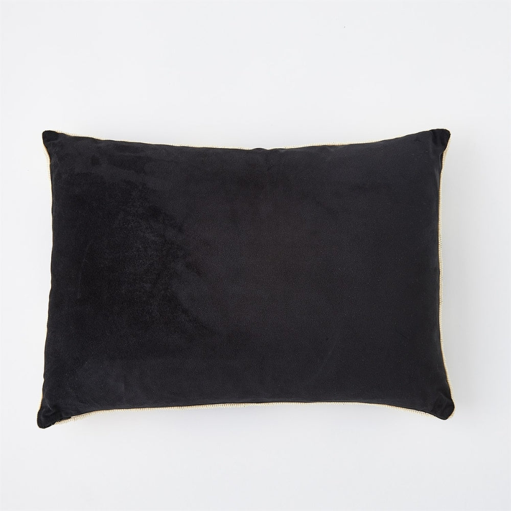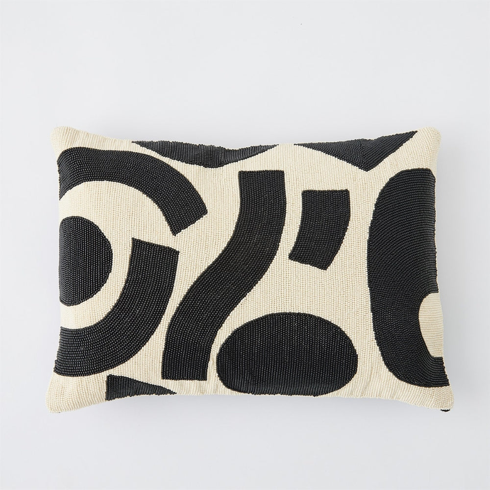 Introducing our Puzzle Beaded Lumbar Pillow, a true statement piece for your home decor. Hand-beaded using glass beads on a cotton canvas front, this exquisite pillow exudes artistry and luxury. Its sumptuous black velvet back and luxurious down-fill insert combine for ultimate comfort and elegance.