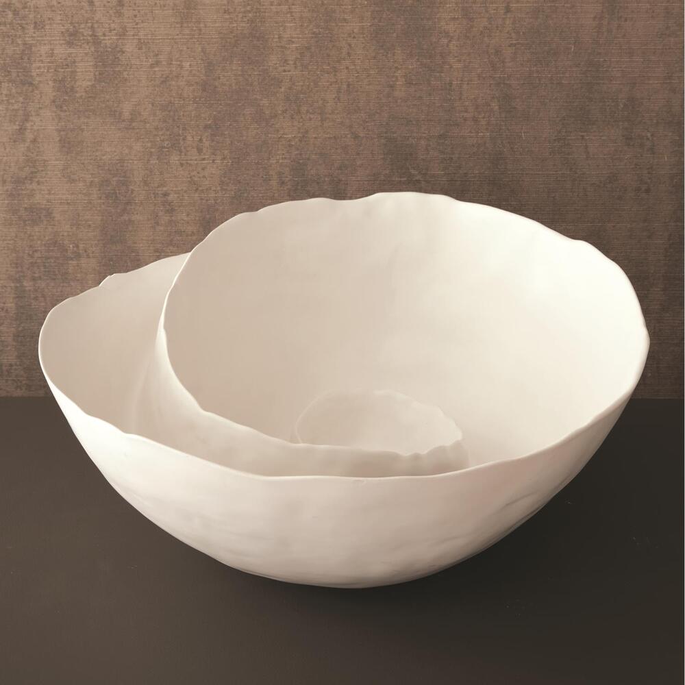 Introducing the Global Views Spiral Bowl in Matte White. The Global Views Spiral Bowl is made of luxurious Portuguese ceramic with a stunning matte finish, this bowl features a unique swirling ridge design that adds an artistic touch to any space. The Global Views Spiral Bowl can be cleaned by dusting it off with a dry cloth, but not intended for food or water use. Elevate your decor with this exclusive piece.