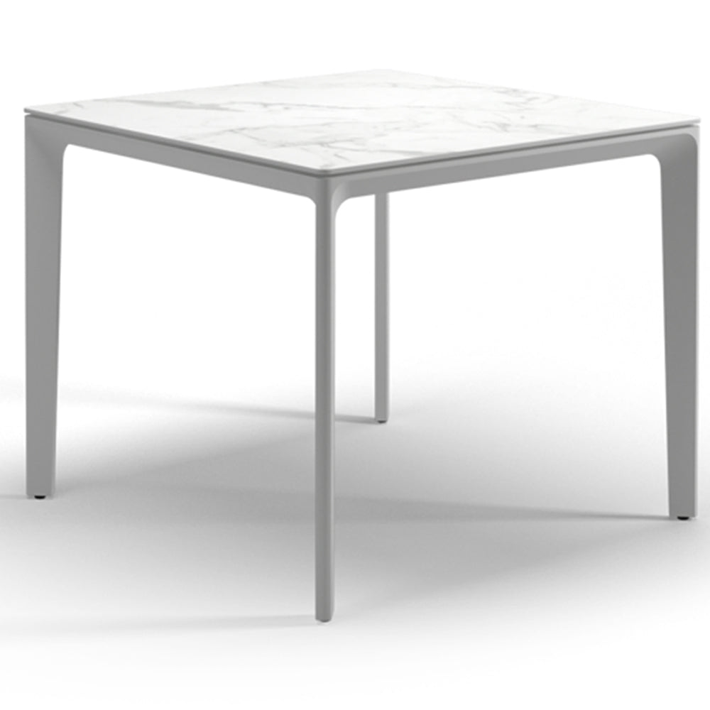 Gloster Square Dining Table has a frame made of powder-coated aluminum. The table top is made of a single piece of ceramic. There is no parasol hole. Powder coated aluminum frame acts as a barrier against corrosion, scratches/chipping, and fading. Gloster Square Dining Table’s powder coated aluminium frame is one of the most cost-effective, long-lasting, and color-durable quality finishes available on nearly any metal. Powder coated aluminum frame ensures a uniform color finish throughout the metal. Moreover, ceramic was chosen for Gloster Square Dining Table, because it is very durable and less prone to scratches and stains than natural stone, such as marble. Ceramic is not only simple to clean and sanitize with common home cleansers, but it is also water-resistant, which means germs and mites have little opportunity of nesting on its non-porous surface. If you care for your table regularly and properly, it will not only endure for a long time, but it will also look just as shiny and wonderful as the day you bought it. It has a basic design, but can blend in with all of your other furniture, filling your space with elegance and refreshing the look of your surroundings. Gloster Square Dining Table’s material can be easily restored to its original shine with a few basic household cleaning solutions.