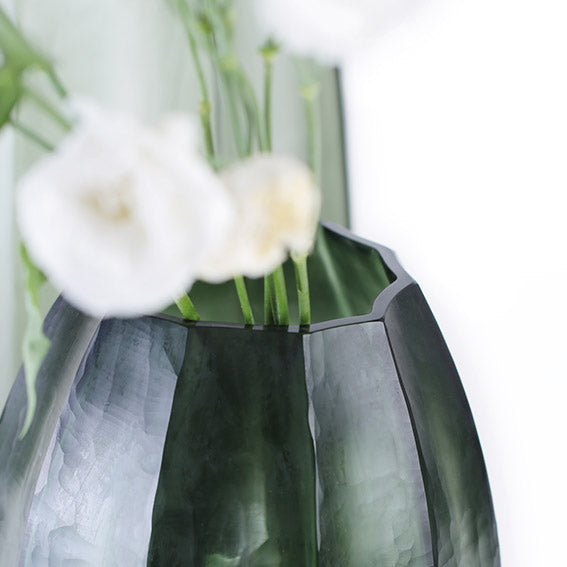 Vases are a versatile decorative accent. The Koonam collection not only stands for a clear and organic shape, but also for the invigorating momentum and the intoxicating power of a crystal-clear waterfall. It is only thanks to the complex but infinitely valuable production method of glass blowing that Guaxs can transform this magic of nature into a sculptural form. Whether a decorative vase or votive in indigo blue or smoky gray enriches the atmosphere of your space, Koonam Vase allows the calming and life-enhancing force of nature to breathe. In this way, the clear edges, in contrast to the vague curves, reflect the traces of falling water when the light falls. Simple and stylish, appealing and graceful, Koonam Vase is an enrichment in detail and as a whole. The Koonam Vase design is available in other sizes and shapes. The handmade and mouth-blown items from Guaxs impress with their incredible variety, so that you can combine them as you wish. There is a suitable glass object from Guaxs for every occasion and every celebration, for every corner of your living area. The design vases from Guaxs are incredibly suitable as decorative flower vases. This Koonam Vase is designed with your modern home/office décor in mind.