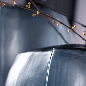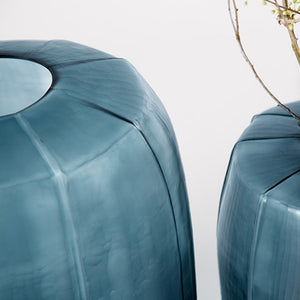 The GUAXS Tamatav Round Vase showcases a stunning blend of ocean blue and indigo hues in mouthblown glass. Handmade with meticulous craftsmanship, its smooth, rounded form brings a serene yet striking presence to any setting. This elegant vase offers a timeless accent that enhances your decor with depth and sophistication.