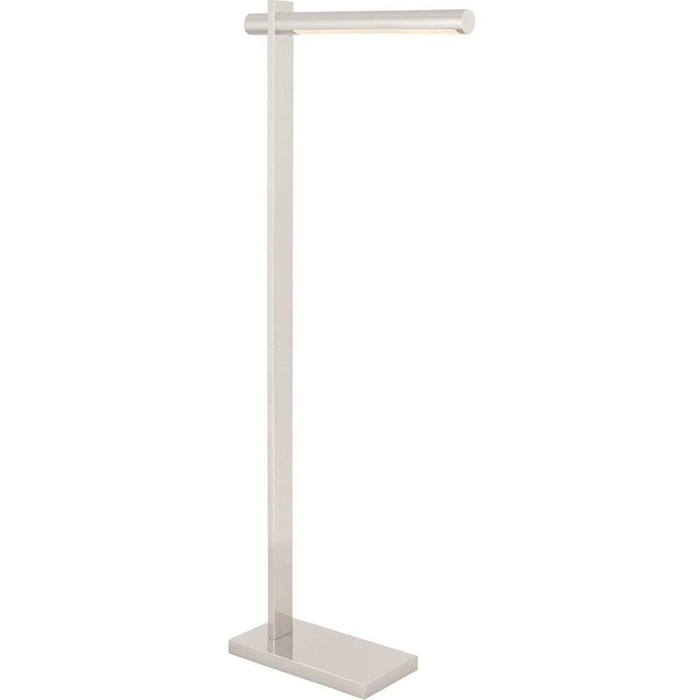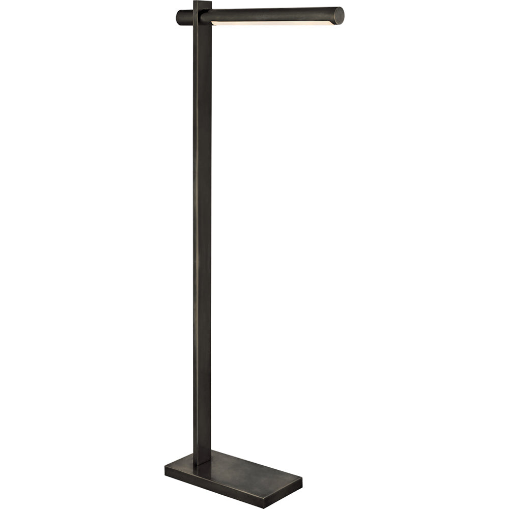With its cantilevered silhouette, the Axis Pharmacy Floor Lamp by Kelly Wearstler celebrates functionality through purist modern geometry. This directional floor lamp features a lo-hi touch switch control and integrated warm L.E.D. technology. It is available in Bronze, Burnished Brass or Polished Nickel.