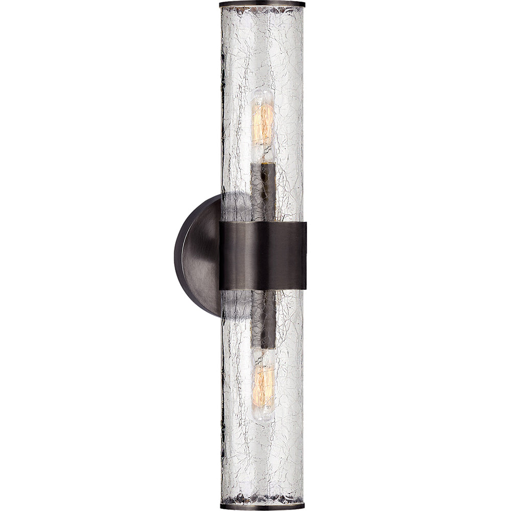 Liaison Medium Sconce by Kelly Wearstler blurs the lines of modern and classic with its clean architectural metal detailing and the dynamic beauty of the fractured glass. Liaison Medium Sconce by Kelly Wearstler fixture is appropriate for both indoor and covered outdoor spaces and is available in Antique Burnished Brass, Bronze, and Polished Nickel.