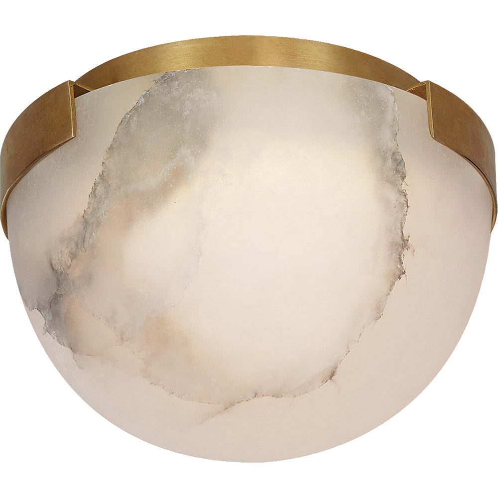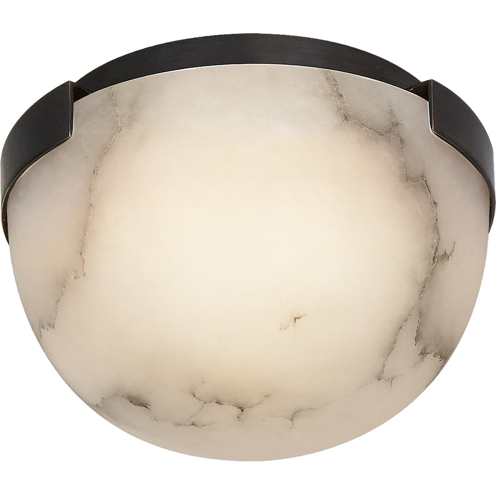 Effortlessly pairing natural alabaster and sleek metal detailing in a streamlined geometric form. Melange 5" Solitaire Flush Mount by Kelly Wearstler exudes a modern refinement while emphasizing the beauty of natural stone. This fixture features hand-carved natural alabaster with either Burnished Brass, Bronze or Polished Nickel detailing and is rated for damp locations.