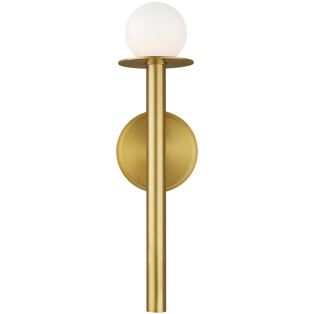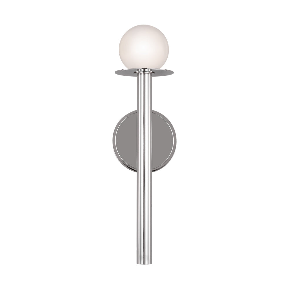 Looking to lighten up a dim room? If you can't sacrifice square footage, a wall sconce is a great option for (literally) brightening bare walls with a pop of decor and illumination. Nodes task, ceiling and wall lighting is minimal yet bold, highlighting Kelly's distinctive juxtaposition of mixed-materiality and curvilinear form. Light radiates from milk glass globes set against metal discs. All fixtures can be used or without the discs. Discover this ultra modern Kelly Wearstler Nodes Sconce available in Burnished Brass,Polished Nickel and Midnight Black cast canopy. Hanging fixtures within this family feature black fabric cords, while pivot sconces can be cord and plug or hard wire. The Nodes lighting family features wall sconces and more—highlighting her unique touch for contrast and harmony with mixed-materiality and curvilinear forms. This Kelly Wearstler Nodes Sconce is a stunning feature to accentuate high ceilings and open spaces. This Kelly Wearstler Nodes Sconce is great for indoor bathroom fixtures, kitchens, powder rooms, dining rooms, dressers, mirror cabinets, vanities, living rooms, foyers, hallways, etc.