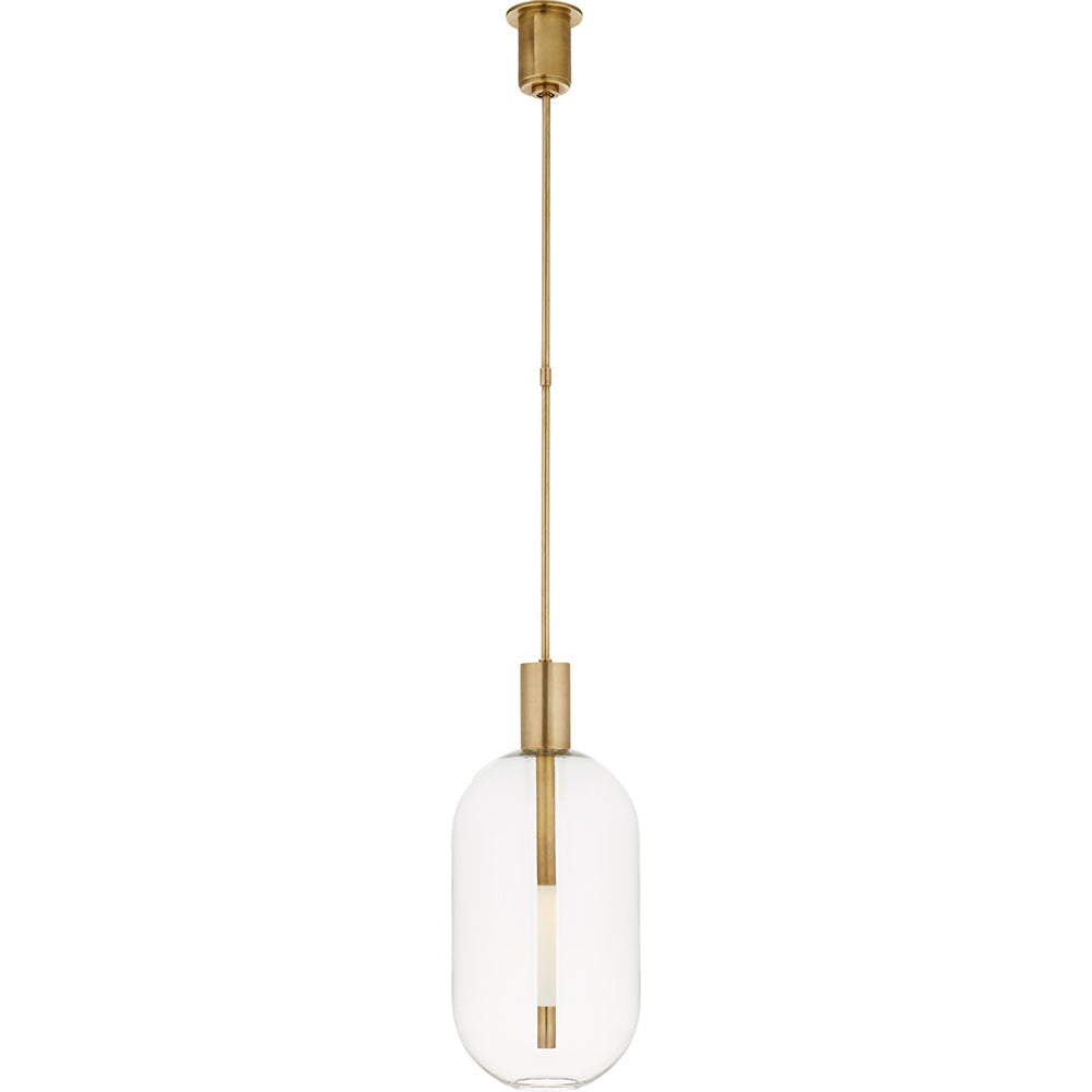 Nye Tall Pendant by Kelly Wearstler features a distinctive design and soulful vibe. A style that juxtaposes raw with refined, melds color, sophistication and spirited spontaneity. A modernist lantern, the Nye Tall Pendant by Kelly Wearstler pairs artisanal blown glass with innovative LED technologies for a look that is both sculptural and sleek.Nye Tall Pendant by Kelly Wearstler is available in either Burnished Brass, Bronze, Antique Nickel or Polished Nickel with Clear Glass. It is rated for damp locations.