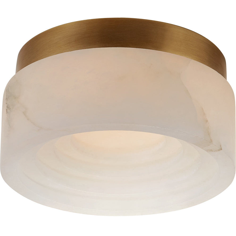Illuminate your space in a streamlined style with this Otto 5 Solitaire Flush Mount by Kelly Wearstler.Otto 5 Solitaire Flush Mount by Kelly Wearstler is an elegant addition to your bedroom, bathroom, vanity, or foyer areas, a true touch of luxury and solid sumptuousness that can be seen from afar with little effort. Otto 5 Solitaire Flush Mount by Kelly Wearstler spotlights the beauty of natural stone with its pure, concentrically carved form. This petite flush mount is available in Burnished Brass, Bronze or Polished Nickel with Natural Alabaster. Rated for damp location.
