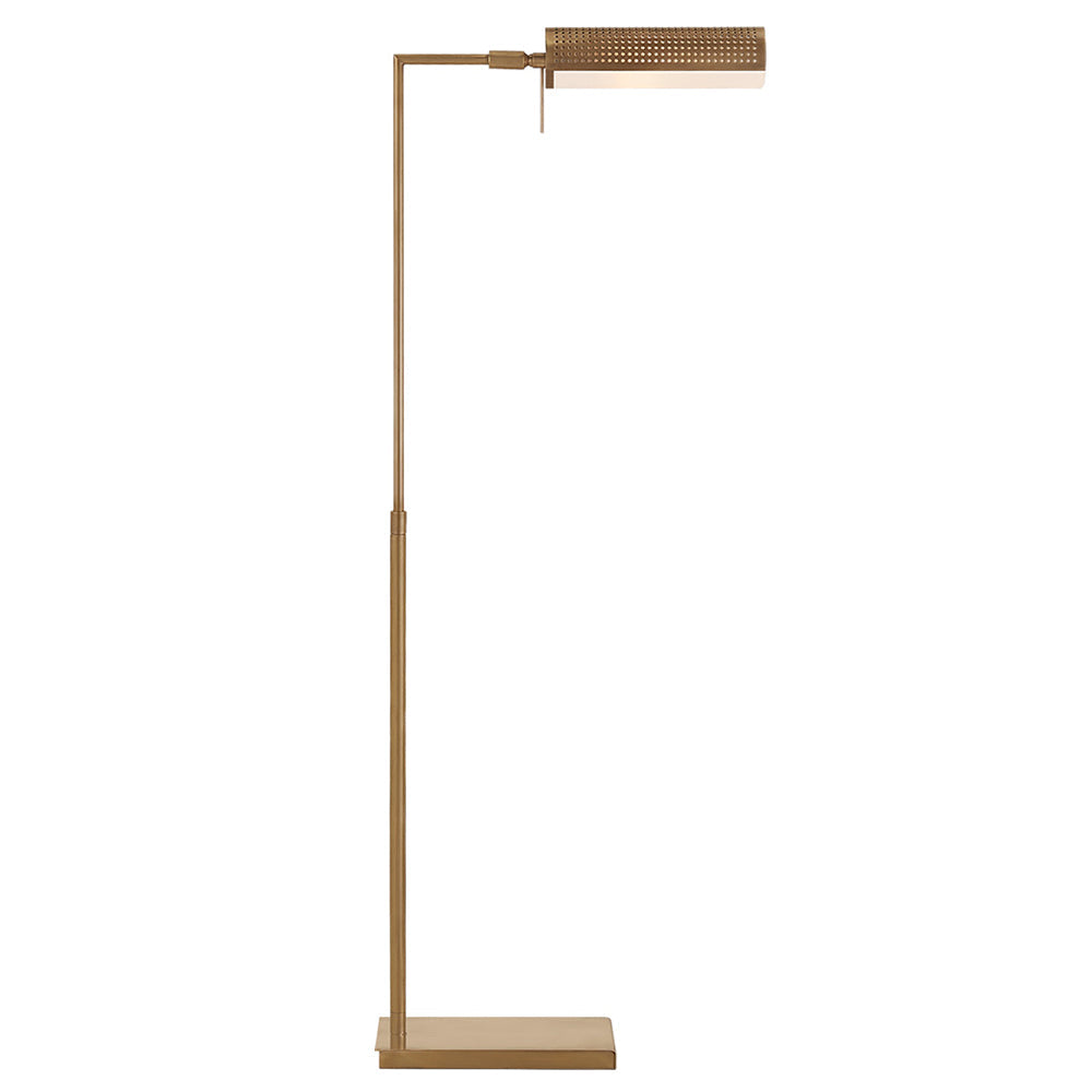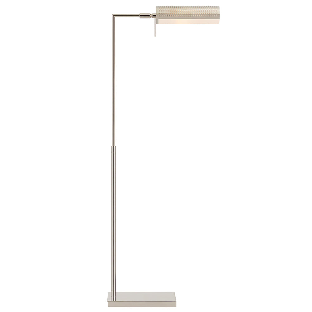 Precision Pharmacy Floor Lamp by Kelly Wearstler featuring perforated metal in a sculptural assembly, this collection is born out of a love of architecture and the interplay of light over form. These perforations, a signature design element within Kelly's practice, diffuse and reflect light, adding delicate texture and a rich sense of depth to any space.