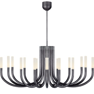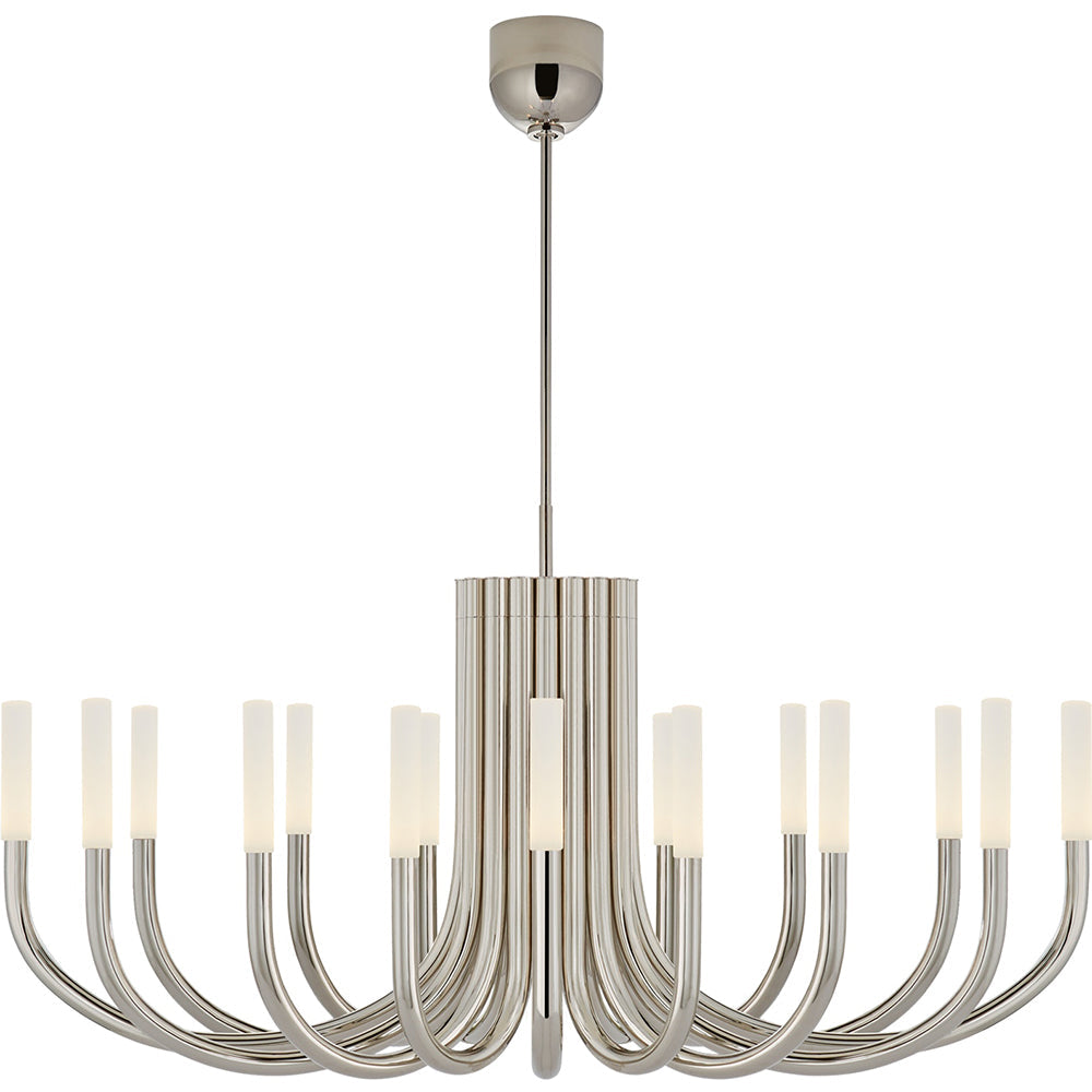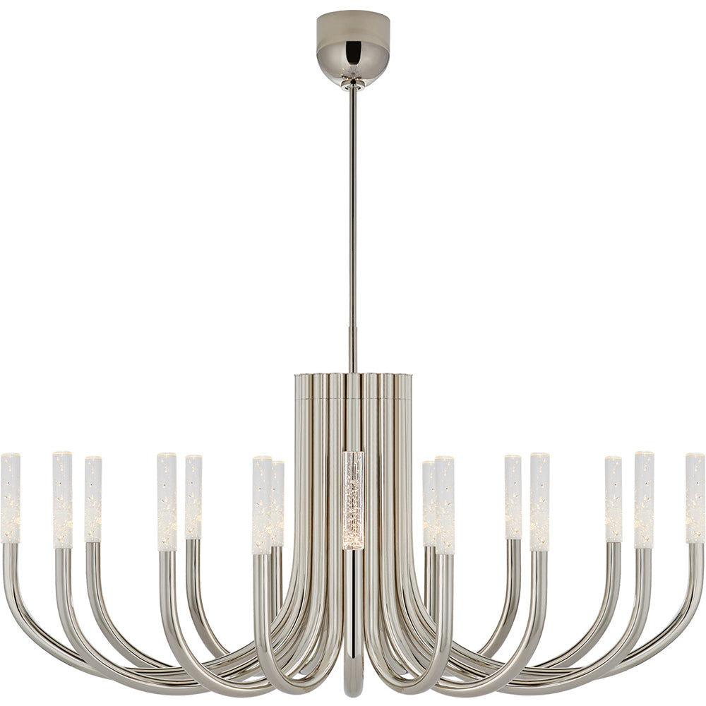 The Rousseau Large Oval Chandelier by Kelly Wearstler is an iconic convergence of modern design and minimalist form.This chandelier is available in Bronze, Antique Brass or Polished Nickel with Etched Crystal lenses and is rated for damp locations. The Rousseau Large Oval Chandelier by Kelly Wearstler adds signature designer style to interiors.The slim, linear arms of this Rousseau Medium Chandelier bring a sleek and sophisticated look to your space. The LED lighting illuminates the whole living room, entry way, or other area needing extra light.
