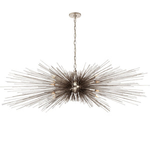 The Strada collection is delicate and ethereal, drawing inspiration from Kelly’s love of bronze and vibrant, organic forms. Each sculptural piece, with a seemingly random array of radiating quills, plays with cast shadow to evoke a soft sophistication.Strada Large Linear Chandelier by Kelly Wearstler is available in Aged Iron, Burnished Silver Leaf, and Gild.