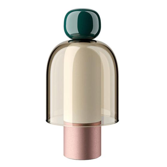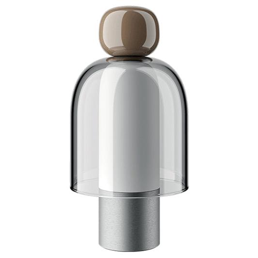 With a strong personality and a sculptural form reminiscing the shape of bells, Easy Peasy is a set of portable and rechargeable table lamps, consisting of two rounded elements, a body and a knob. Made of blown glass, Easy Peasy allows for personal customisation of the living spaces. Its portability, different shapes and colours, and the dim-to-warm functionality of its light source allow users to connect, play and interact with the variable configuration options. Like a set of friendly characters reminiscent of dolls, Easy Peasy portable and rechargeable lamps reflect in their name a playful spirit. With a sculptural design that aims for minimal elegance through rounded shapes and eclectic colour combinations, Easy Peasy portable lamp adds warmth and character to any environment.