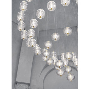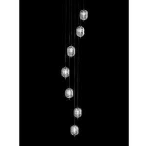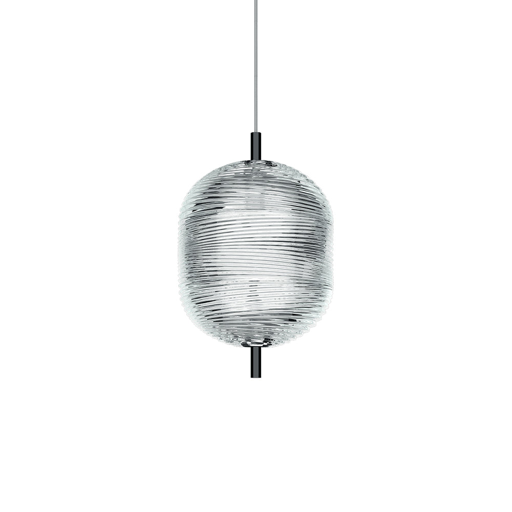 The Jefferson suspension lamp designed by Luca Nichetto is reminiscent of music and iconic images in psychedelic works of art from the 1960s. The vortex motif decorating the diffuser is embellished by the timeless classicism of Bohemian crystal, which diffuses evocative atmospheres of light. Dynamic in its many sizes and multiple compositions, Jefferson’s elegance keeps up with the excellent performance of LED interior lighting. Designed by Luca Nichetto, Jefferson is a suspension lamp in precious Bohemian crystal inspired by the psychedelic visual arts of the Sixties. The vortex pattern that characterises the surface of the diffuser recalls the artistic movement of the counterculture of the late 1960s and its kaleidoscopic and whirling chromatic patterns, which Jefferson elegantly celebrates in a subtle play of luminous suggestions. Jefferson reinterprets the geometric pattern on Bohemian crystal through a special pressing technique that imprints meticulous details on the transparent surface. Jefferson’s Mini version consists of two elliptical crystal diffusers joined together on a black chrome or golden frame that seems to make the crystal rotate like a spinning top. The addition of cylindrical modules extends the size of the lamp in Small and Medium variants thanks to a simple interplay of joints. Suspended from a thin yet highly resistant cable thanks to the built-in Kevlar reinforcement, Jefferson diffuses a warm and elegant light. It features a 3 W LED module with a Colour Rendering Index (CRI) equal to 90, meaning true colour reproduction. The light developed by the LED source is enhanced by the interplay of reflections between the surface motifs of the crystal and the frame. The different dimensions of Jefferson and the possibility of cluster compositions multiply the dynamics of light and infuse a personal touch to different environments. An evocative combination of form and sign, classicism and innovation, Jefferso represents a refined solution to transform any space into a warm living environment.