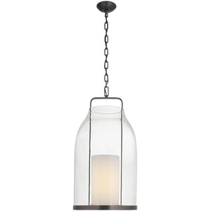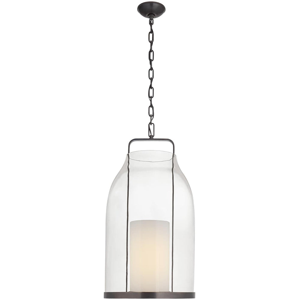 Greet guests with a warm and welcoming glow before you even reach the door with this hanging lantern, perfect for the porch or patio. Enhance the look of your décor with the Ralph Lauren Ollie Large Lantern. With its versatile transitional design, this distinctive light is sure to pair well with many decorative styles. It can also be used indoors. Discover this elegant Ralph Lauren Ollie Large Lantern in Bronze with Clear Glass finish. The Ralph Lauren Ollie Large Lantern provides an open and airy accent as it brightens exteriors.Its clear glass shade drops from a chain, while a slender metal hook enters the glass through an open top to join a matching base below. Its subtle curves present a modern take on the classic lantern silhouette, with a pillar candle shade at its center containing its LED and completing its look.
