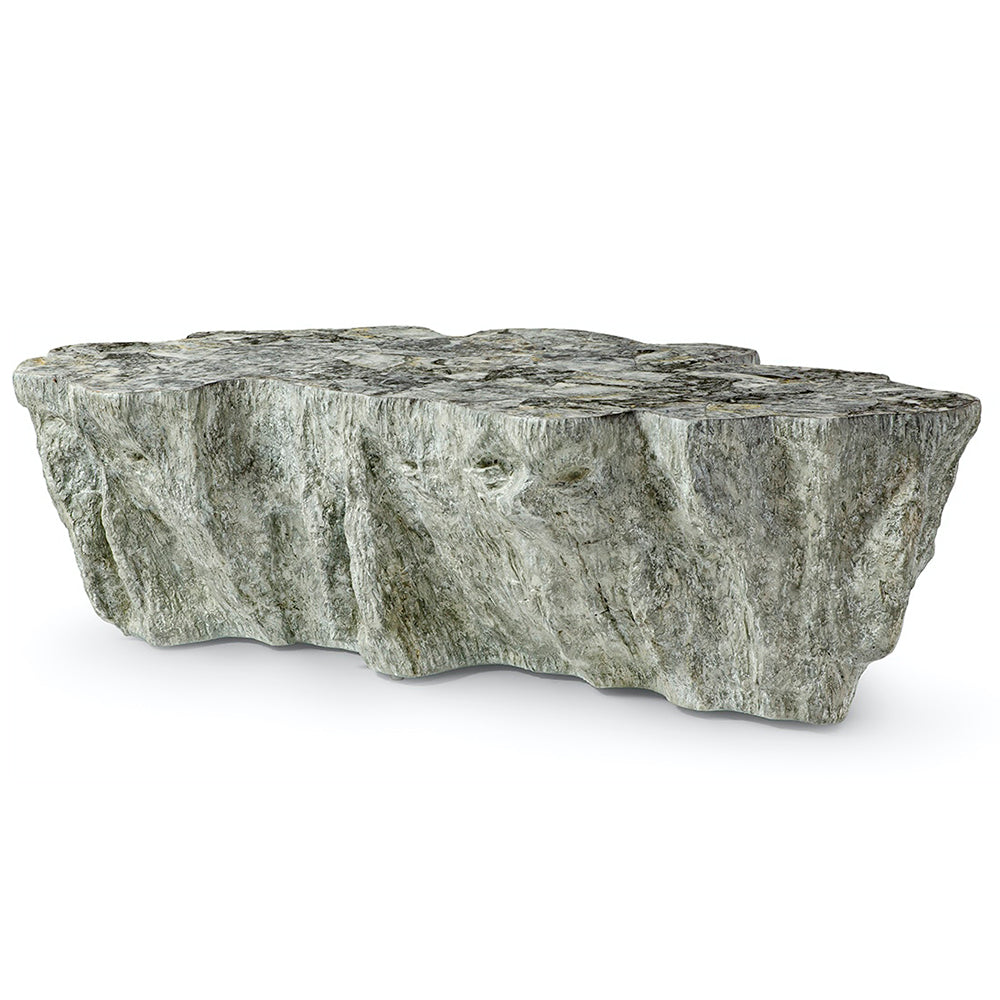 Palecek Asher Outdoor Coffee Table Large’s tabletop features natural inlaid stone in grey, cream and white tones on a stonecast base made from a real tree trunk mold finished in natural grey tones. Stone is a natural material and may slightly vary in color and grain, no two pieces will be alike. At the heart of Palecek Asher Outdoor Coffee Table Large exquisite lies its captivating tabletop, made from natural inlaid stone in a harmonious blend of grey, cream, and white tones. Each piece of stone is hand-selected, showcasing the unique patterns and textures found in nature. The result of Palecek Asher Outdoor Coffee Table Large is a tabletop that exudes elegance and sophistication, making it a focal point of any outdoor setting. Complementing this captivating tabletop is the stonecast base, which is ingeniously molded from a real tree trunk. This natural grey-toned base adds a rustic touch to the table's overall aesthetic, bringing the essence of the outdoors to your patio or garden. The use of a real tree trunk mold ensures that each base is a one-of-a-kind masterpiece, with its own distinct character and charm.