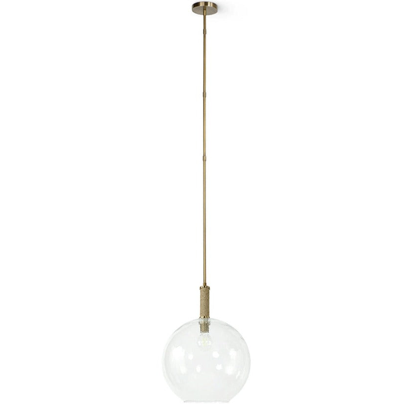 Bring a boost of brightness and a touch of contemporary style to any arrangement with this Palacek Bronson Large Globe Glass Pendant. This Palacek Bronson Large Globe Glass Pendant light makes a statement in your kitchen or foyer with its large clear glass globes and linear design. Kirk Nix collection. Fully adjustable pendant features a hand-blown rippled glass shade accented with natural jute rope. Antique brass or pewter metal finished canopy kit includes 1 x 24" rod, 2 x 12" rods and 1 x 3" rod for customizable hanging heights. We love how its sleek aesthetic makes this light blend with decor styles from contemporary to transitional. A truly dynamic fixture, the Palacek Bronson Large Globe Glass Pendant fits seamlessly amidst most décor styles. Its sleek design and vast offering of finishes and shade options make the Palacek Bronson Large Globe Glass Pendant an easy choice for all homes. Professional installation is recommended.