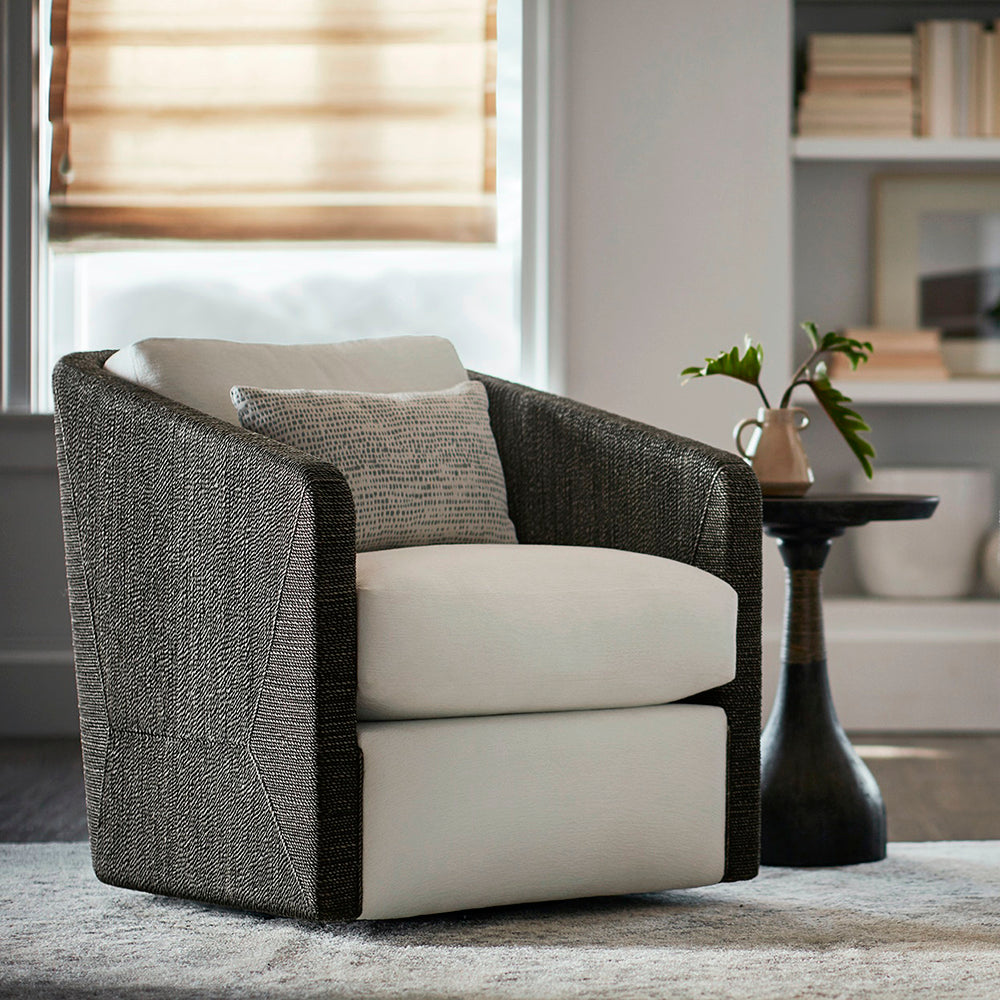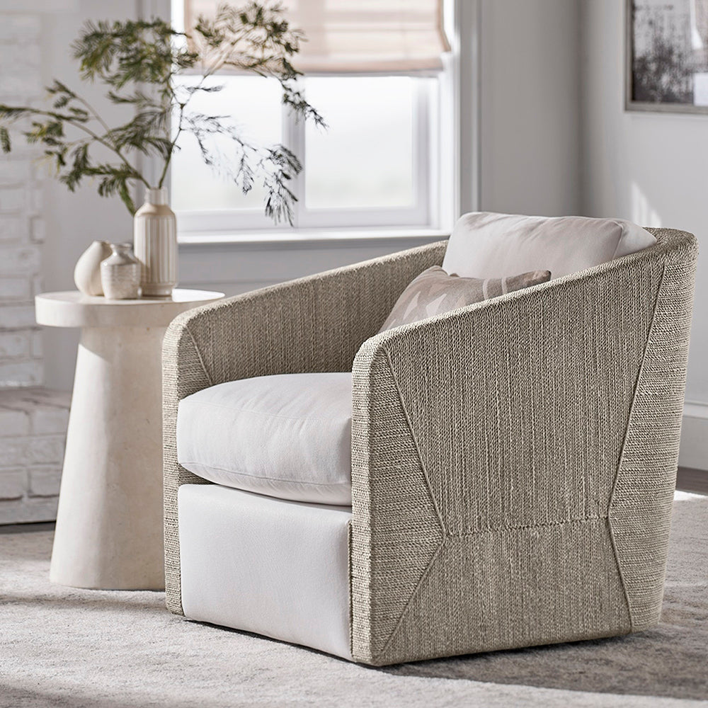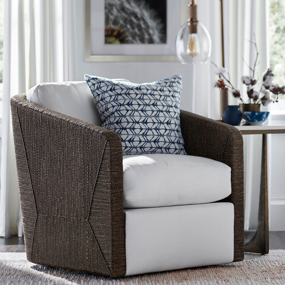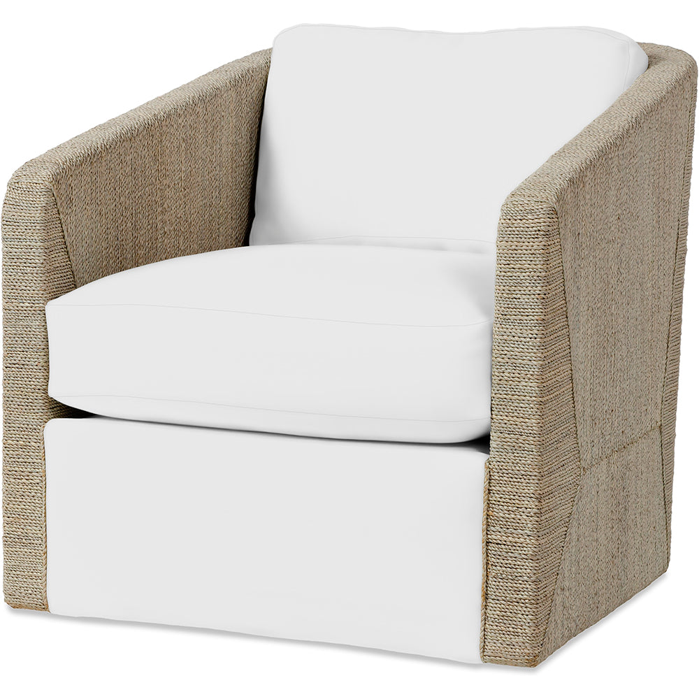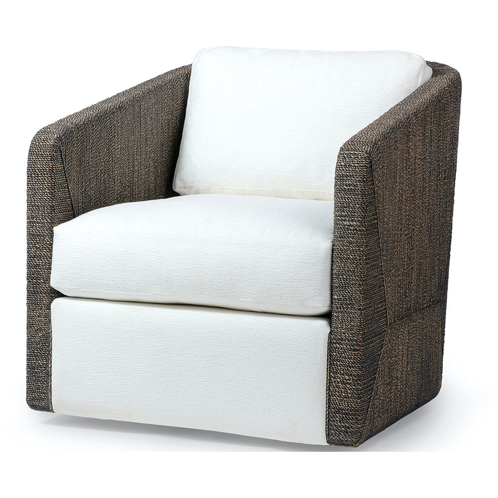 The Palecek Carmine Swivel Lounge Chair exudes contemporary sophistication and comfort. The Palecek Carmine Swivel Lounge Chair's hardwood frame and loose seat and back cushions ensure durability and superior relaxation. The Palecek Carmine Swivel Lounge Chair is available in finishes, Fog White, and Mocha Wash, showcasing a subtle elegance, and offering a timeless, yet exclusive look to any interior setting.