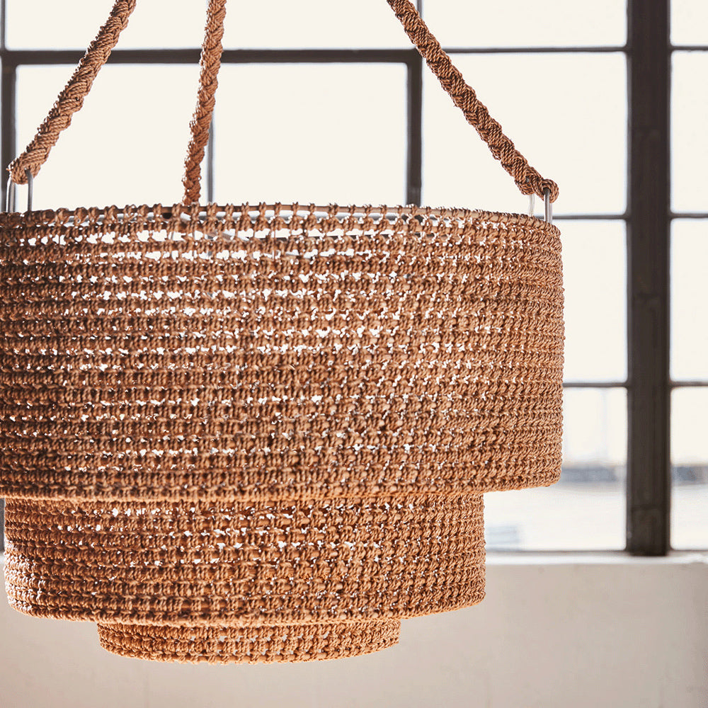 On or off, this Palecek Veranda Woven Pendant light has a natural yet dynamic look that’s the perfect finishing touch for your space. The eye-catching Palecek Veranda Woven Pendant is made from natural rattan woven to let the down light shine through and illuminate with a special visual effect. Bring a nature-inspired, coastal look to your home with this Palecek Veranda Woven Pendant. Core rattan hand-wrapped with natural lampakanai rope. Palecek Veranda Woven Pendant comes with a nickel finished chain and canopy hanging kit. Make a style statement with the coastal-inspired hanging ceiling light fixture. It features nickel finished chain and handmade core rattan cage shade which is crafted of natural rattan/wicker. It's an unique blend of eclectic nautical and rustic vintage style. Filtering the light from within, each piece creates a play of light and subtle shadow in a room, adding an inviting ambience. This Palecek Veranda Woven Pendant can work with a variety of boho decors and even work in homes with coastal or farmhouse styling, which is an ideal selection for over your kitchen island, hall way, foyer, or suspended above your kitchen breakfast bar, dinning room table or bedrooms of any kind. Professional installation recommended.