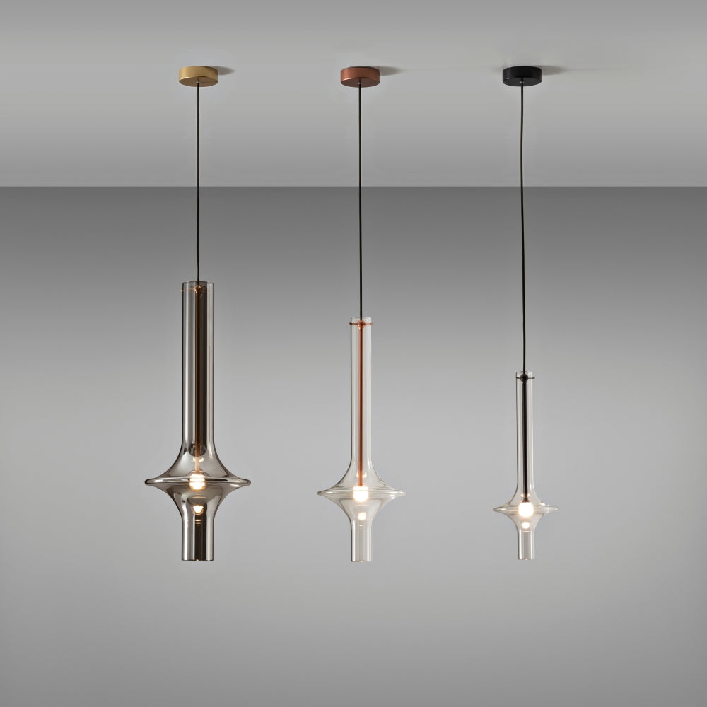 Featuring a clean and crisp modern look. This Penta Wonder Medium Fume Suspension Lamp showcases three shades that can be adjusted to different heights to create dramatic levels of light and shadows in your space. Combining more Penta Wonder Medium Fume Suspension Lamp's in different dimensions, finishings and heights is astonishing as the luminous beauty of the borosilicate glass with which every single rod is made, in transparent or fume finishing. A delicate showcase of the luminous beauty of the borosilicate glass, the Penta Wonder Medium Fume Suspension Lamp by Bartoli Design splays outward to reveal its bulb like a guarded gleaming piece of treasure. Perfect for dining rooms, entryways, and even bedrooms, this ultra modern Penta Wonder Medium Fume Suspension Lamp is sure to brighten up your space in a sleek style. Hang this sleek and modern Penta Wonder Medium Fume Suspension Lamp in your space to add some ambiance and style.