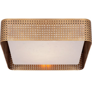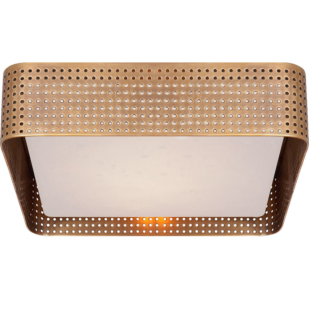 Its clouded glass shade is thoughtfully contrasted with a uniformly perforated metal cage is that uniquely diffuses the light. Precision Large Square Flush Mount by Kelly Wearstler modern with a subtle Mid Century Modern edge, this less is more lighting option still packs a punch.