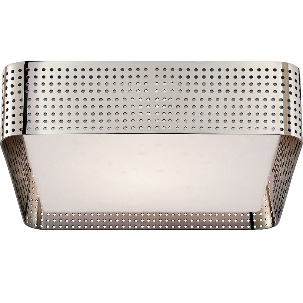 Its clouded glass shade is thoughtfully contrasted with a uniformly perforated metal cage is that uniquely diffuses the light. Precision Large Square Flush Mount by Kelly Wearstler modern with a subtle Mid Century Modern edge, this less is more lighting option still packs a punch.