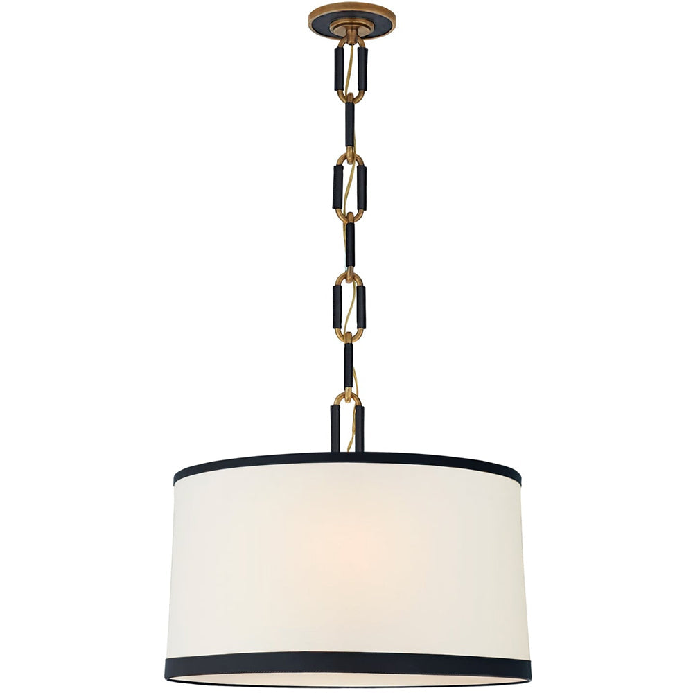 A lighting solution that's a little more of a statement than a lamp, but not quite as show-stopping as a chandelier, a hanging is always the perfect pick. Discover this classic Ralph Lauren Cody Medium Hanging Shade in Natural Brass and Polished Nickel finishes.Timeless in style and evoking signature design details inherent to Ralph Lauren, the spectacular Ralph Lauren Cody Medium Hanging Shade is constructed with beautifully detailed Leather and metal chain-links, an oversized Linen Shade, and equestrian-inspired Leather Trim.This charming Ralph Lauren Cody Medium Hanging Shade provides great task lighting and is safely rated for all locations, including damp areas like bathrooms.
