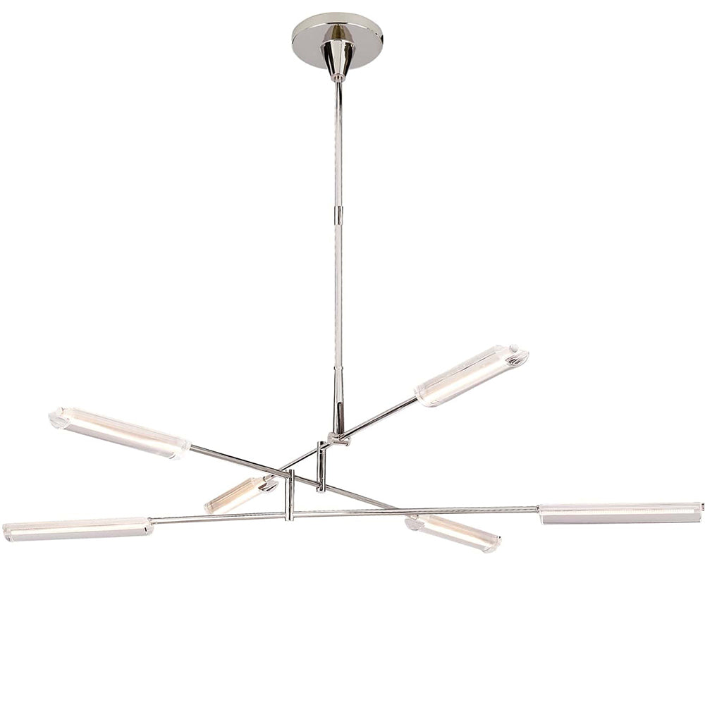 This Ralph Lauren Daley Large Six Light Chandelier is a glam update on a classic silhouette, instantly updating your dining room or living room. Discover this Ralph Lauren Daley Large Six Light Chandelier available in Natural Brass and Polished Nickel finishes.Equipped with dedicated LED, our Ralph Lauren Daley Large Six Light Chandelier is expertly crafted from solid brass with linear arms and modern shades. Both can be adjusted to create the desired silhouette and cast light in the chosen direction.The Ralph Lauren Daley Large Six Light Chandelier provides an abstract approach to lighting the home.Formed of gleaming metal that calls attention to itself and the surrounding room, this modern piece elevates the allure while providing a full and even layer of light. A single downrod leads to three angled, matching bars that uphold each other.The ends of these rods are adorned with integrated LEDs that emit a crisp, bright glow that covers the entirety of the space below.