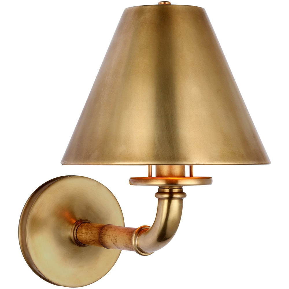 Description: Dalfern Medium Single Sconce in Waxed Bamboo and Natural Brass with Natural Brass Shade